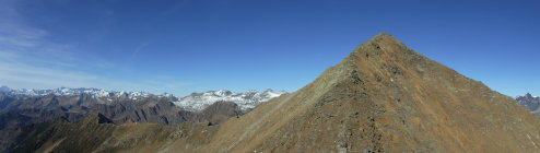 Tourenbeginn um 08:00 Uhr bei 3°C unter wolkenlosem Himmel, mittags dann 15°C mit leichtem Nordwind auf dem Gipfel. Rückweg von Cap. Cadagno am frühen Abend mit Stirnlampe bei fast Vollmond.