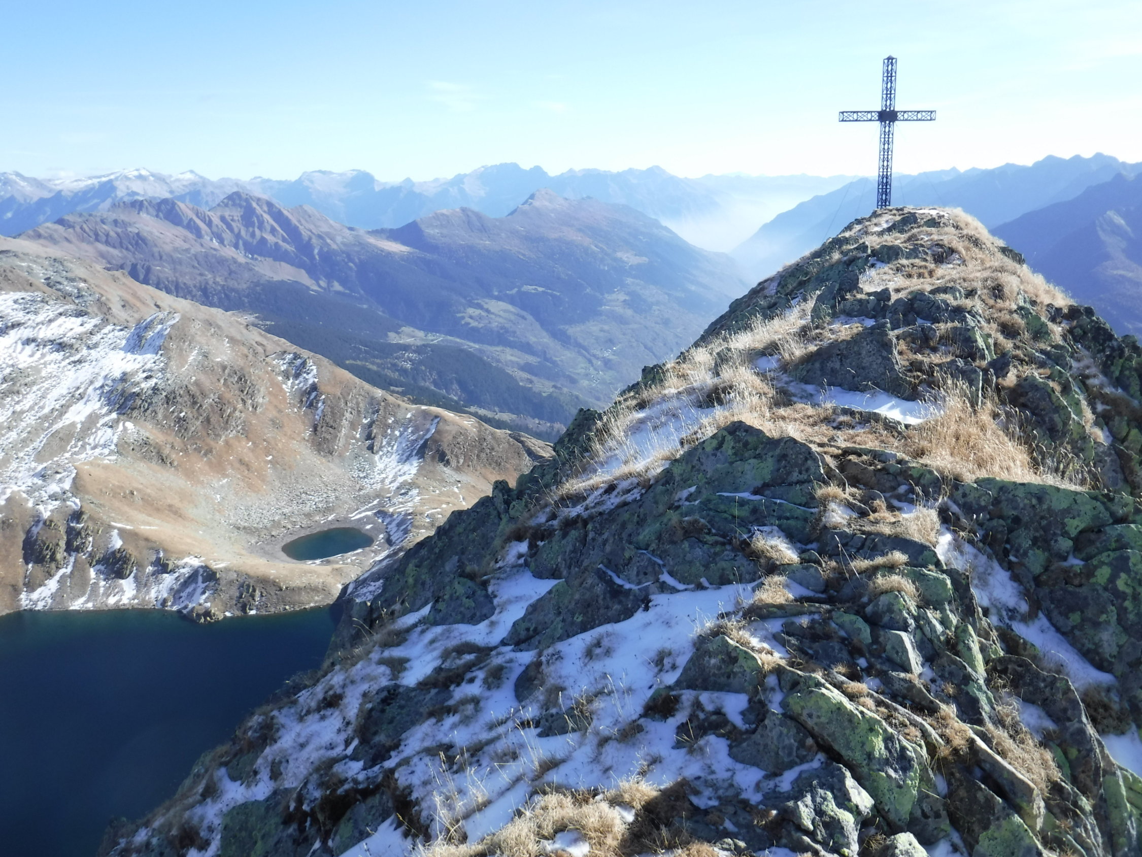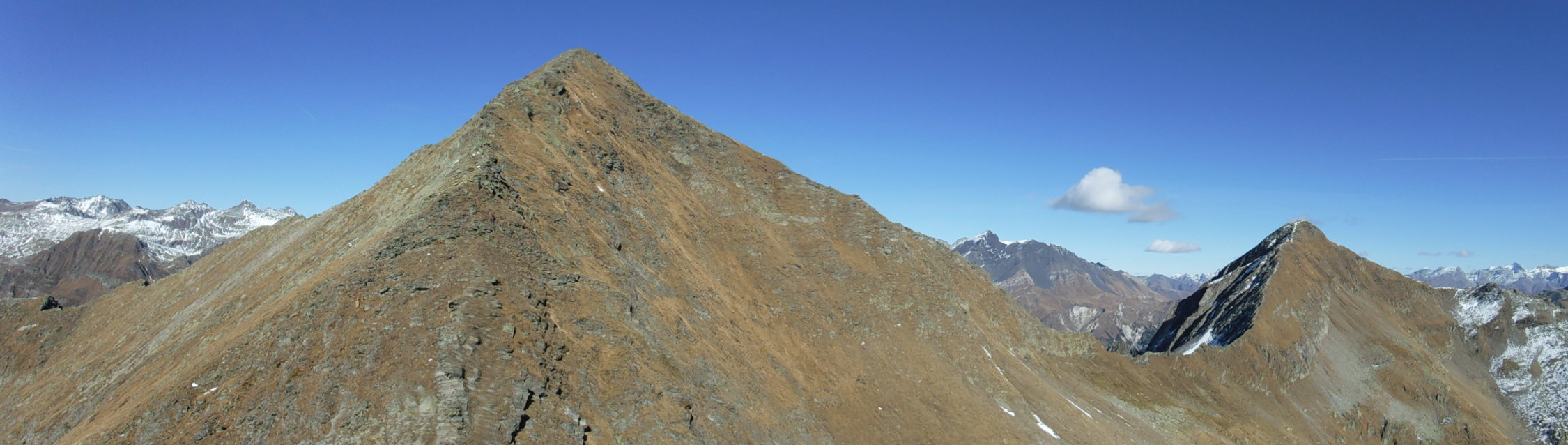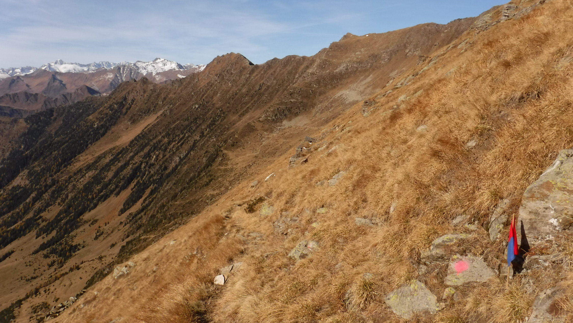 Auf dem Gipfel traf ich 4 Leute an. Sie kamen über den üblicheren Südaufstieg von Lurengo über Pian Pécian (1300 Hm). Das Gipfelbuch ist vom 18.8.2017 und hat noch nicht viele Einträge. Über den Südgrat auf den Pécianett kletterten 2 Berggänger (13:00 Uhr), die wohl über den Passo Comasnengo kamen.