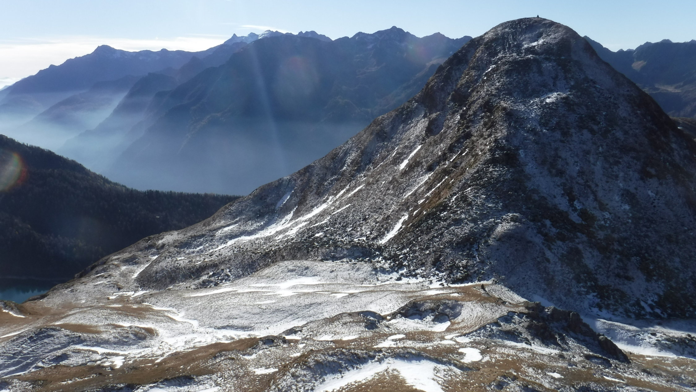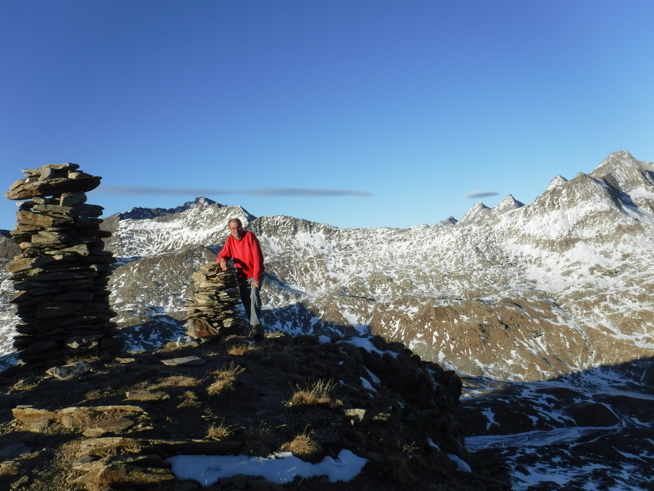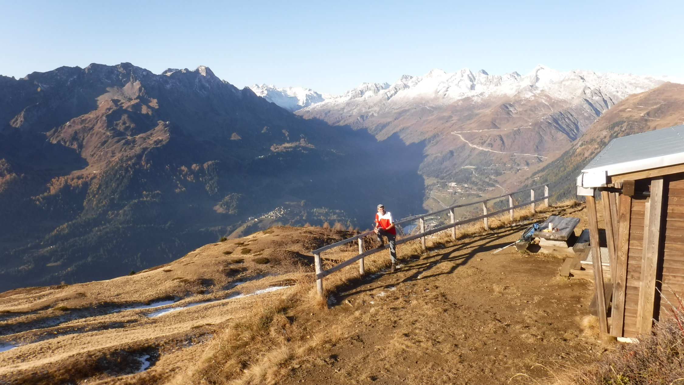 Tourenbeginn um 07:40 Uhr bei -2°C. Am frühen Nachmittag im T-Shirt an der Cadlimohütte im sonnigen Windschatten: 22°C.