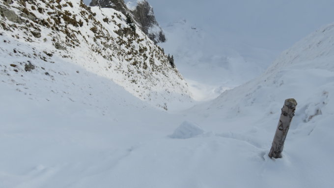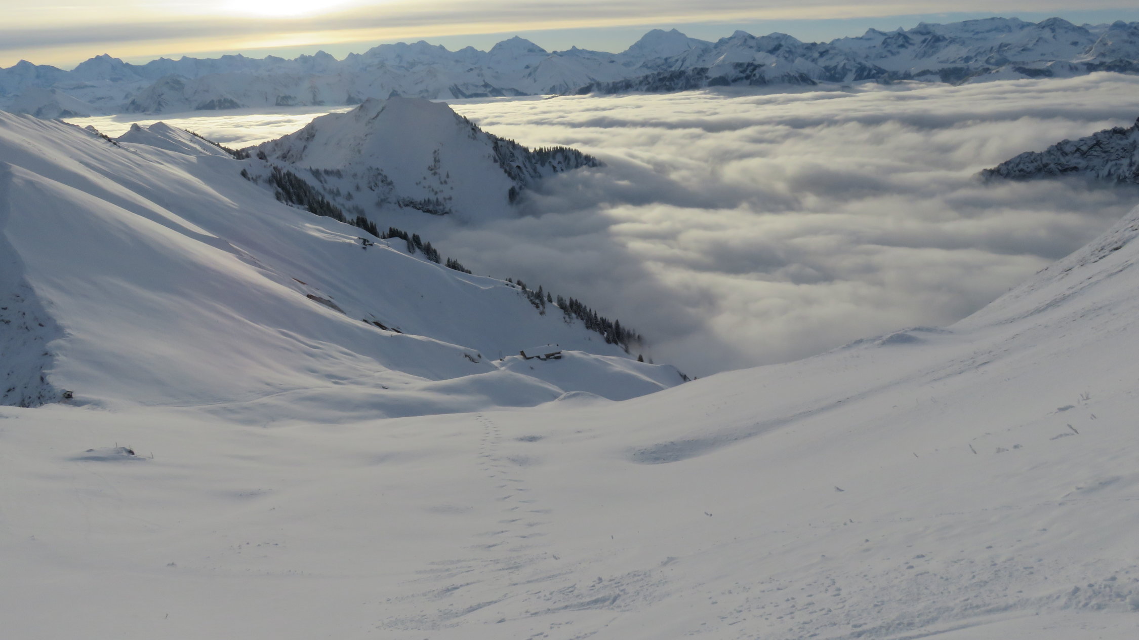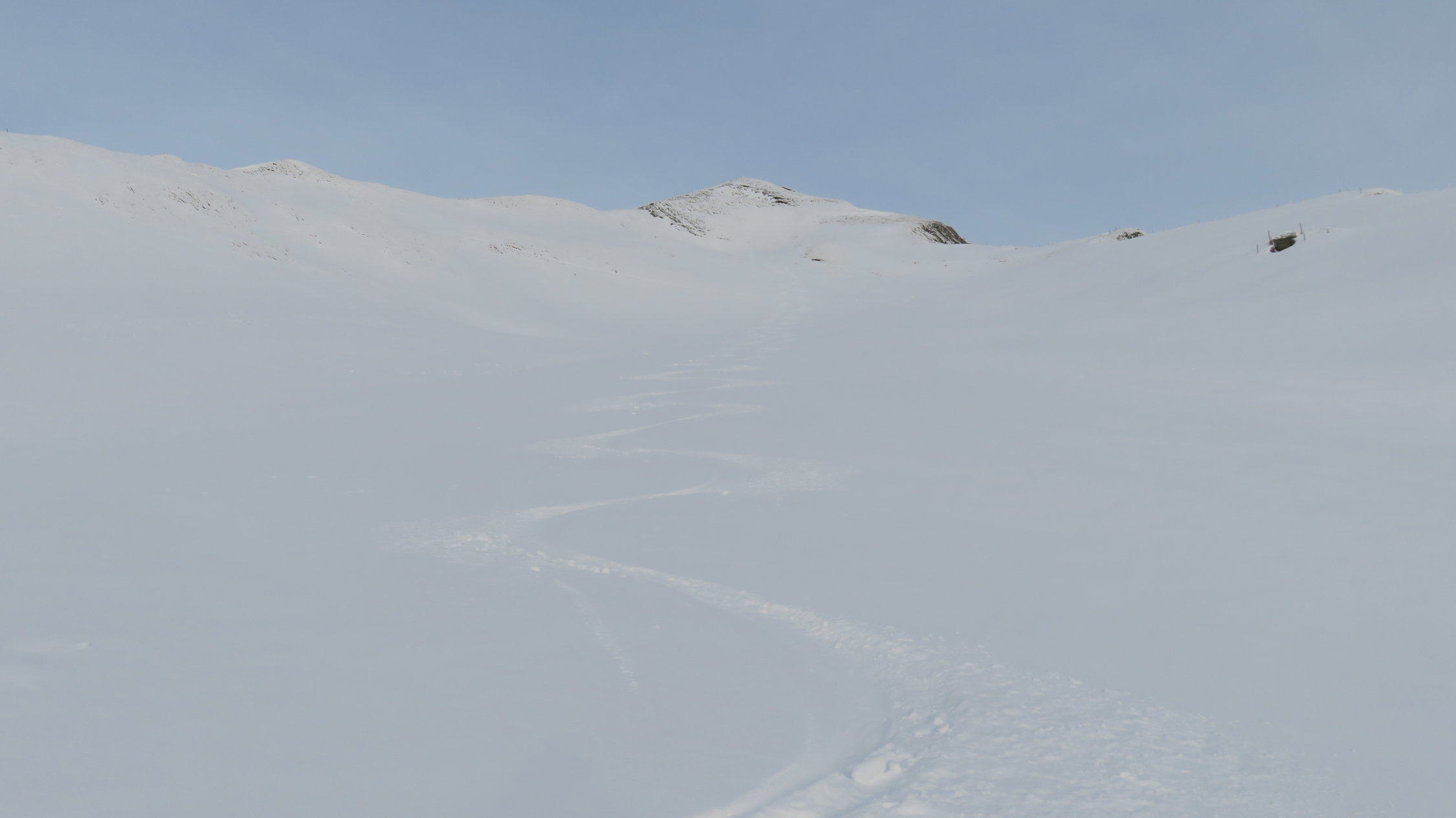 Nordflanke muss man gut schauen wo der Schnee liegt dann geht es ohne viel Steinkontakt 20-50cm Pulver
