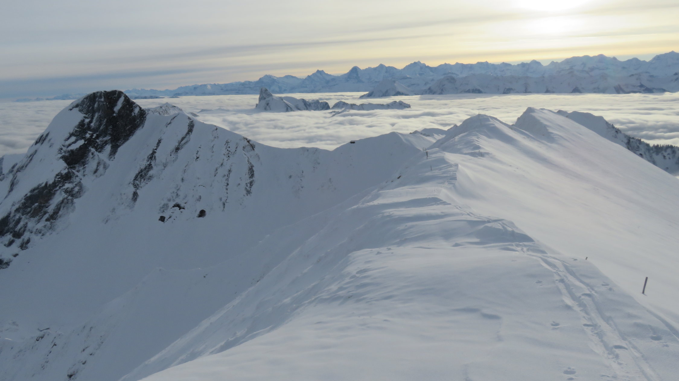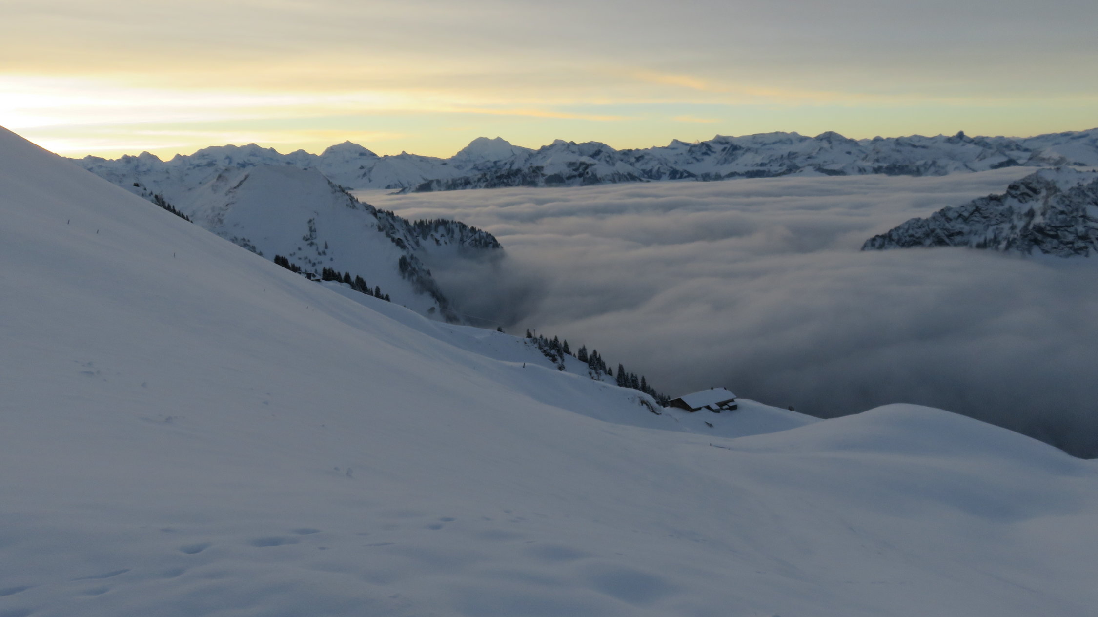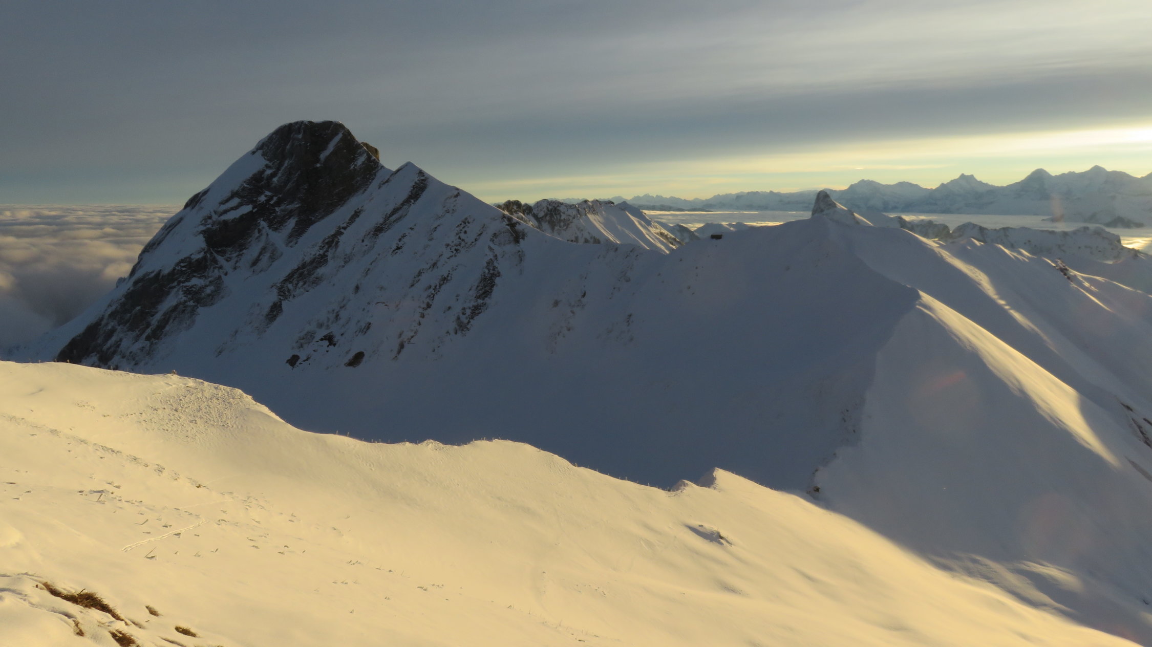 Nordflanke muss man gut schauen wo der Schnee liegt dann geht es ohne viel Steinkontakt 20-50cm Pulver