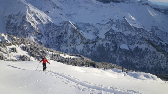 Unten taut der Schnee schon morgen oder übermorgen wieder weg. Steilere Südhänge unterhalb 2000m werden schon morgen decklig sein. Somit also besser höher gelegene Ausgangspunkte oder schattigere Expositionen wählen.
