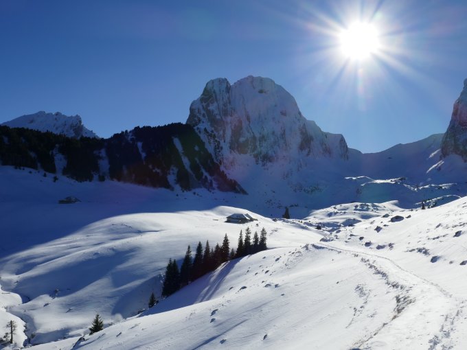 Im Waldbereich Pulver, am Gipfelhang Harst und Presspulver, eine lohnende erste Skitour, Abfahrt zur Skilift Talstation schon möglich (noch nicht in Betrieb), Aufstieg zur Wasserscheide