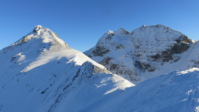 Oberhalb 1600m 20-40cm Pulverschnee mit fester Unterlage, am Gipfelgrat windbearbeiteter Presspulver.