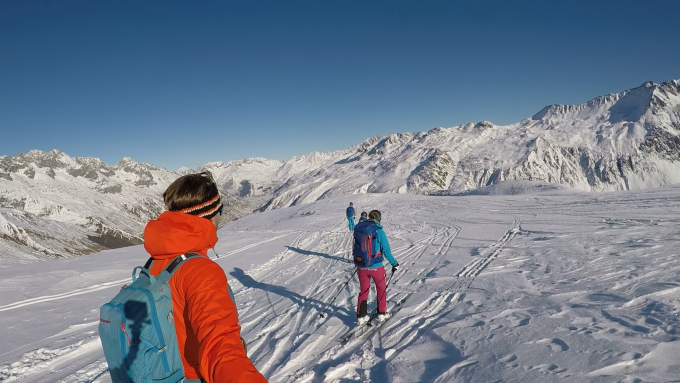 Für November recht beauchbar. Ab 1700 m die Ski angeschnallt, von dort durchgehend auf den Gipfel. Ab 2000 m gute Verhältnisse. In der Abfahrt unten botanisch angehaucht, aber alles in allem gut für den frühwinter.