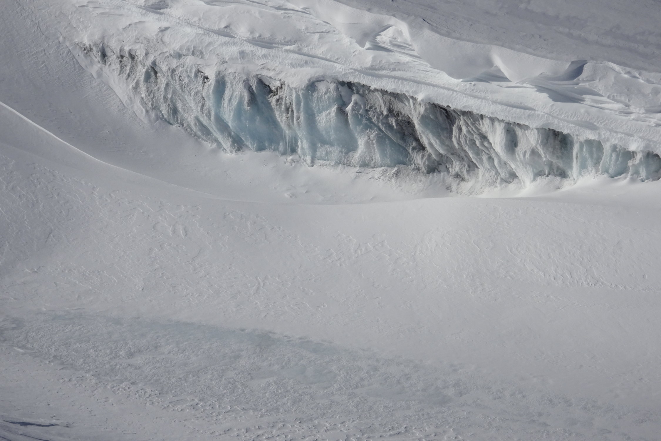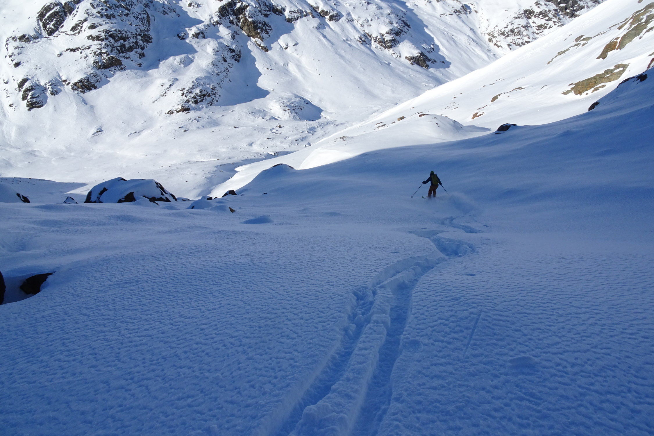 Die Nordwestabfahrt ist pickelhart. Normal fahren wir gern dort runter, aber Pulver ist uns natürlich lieber.