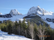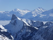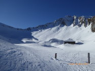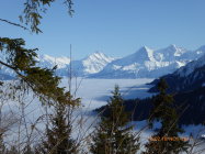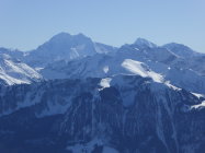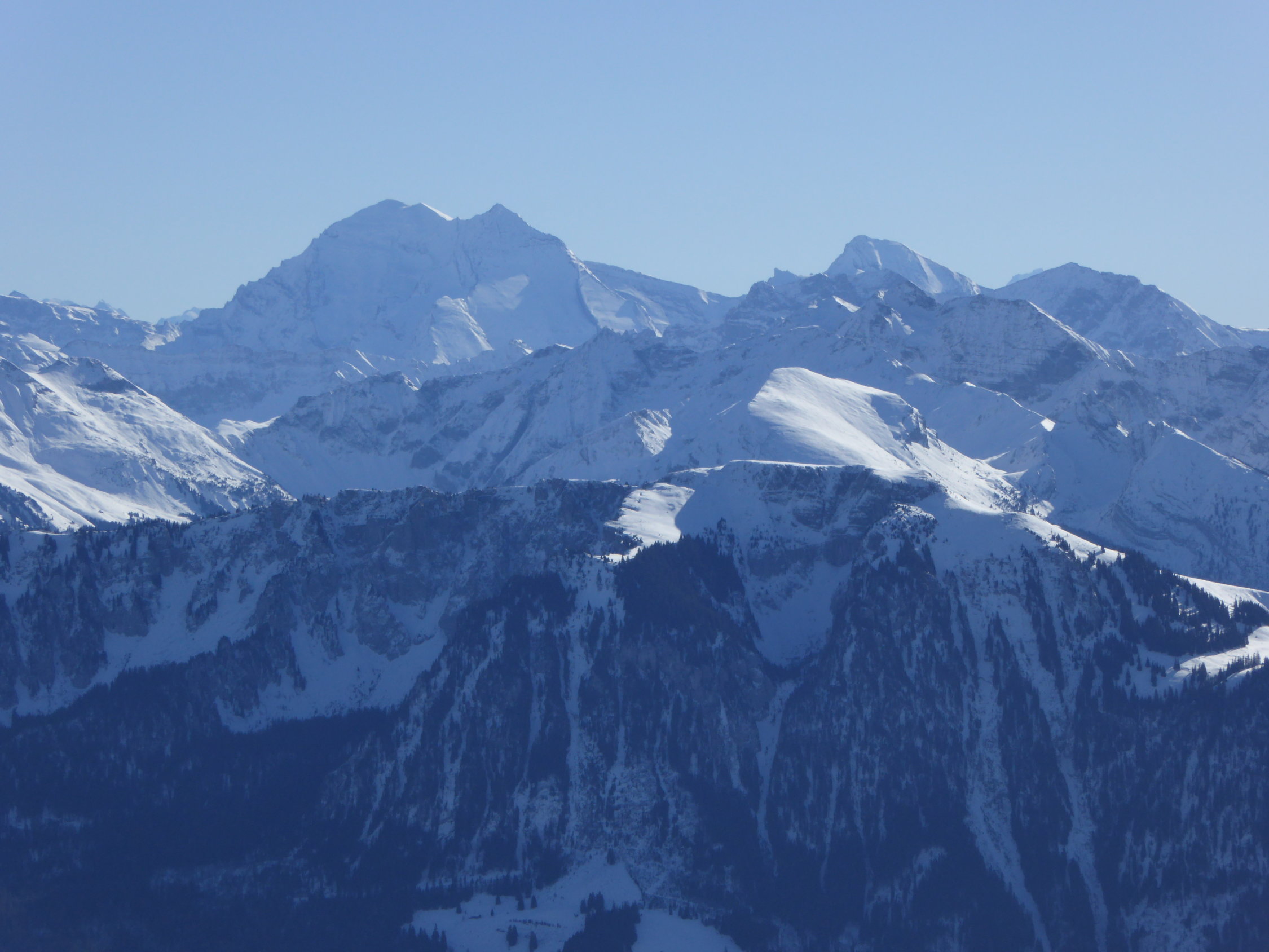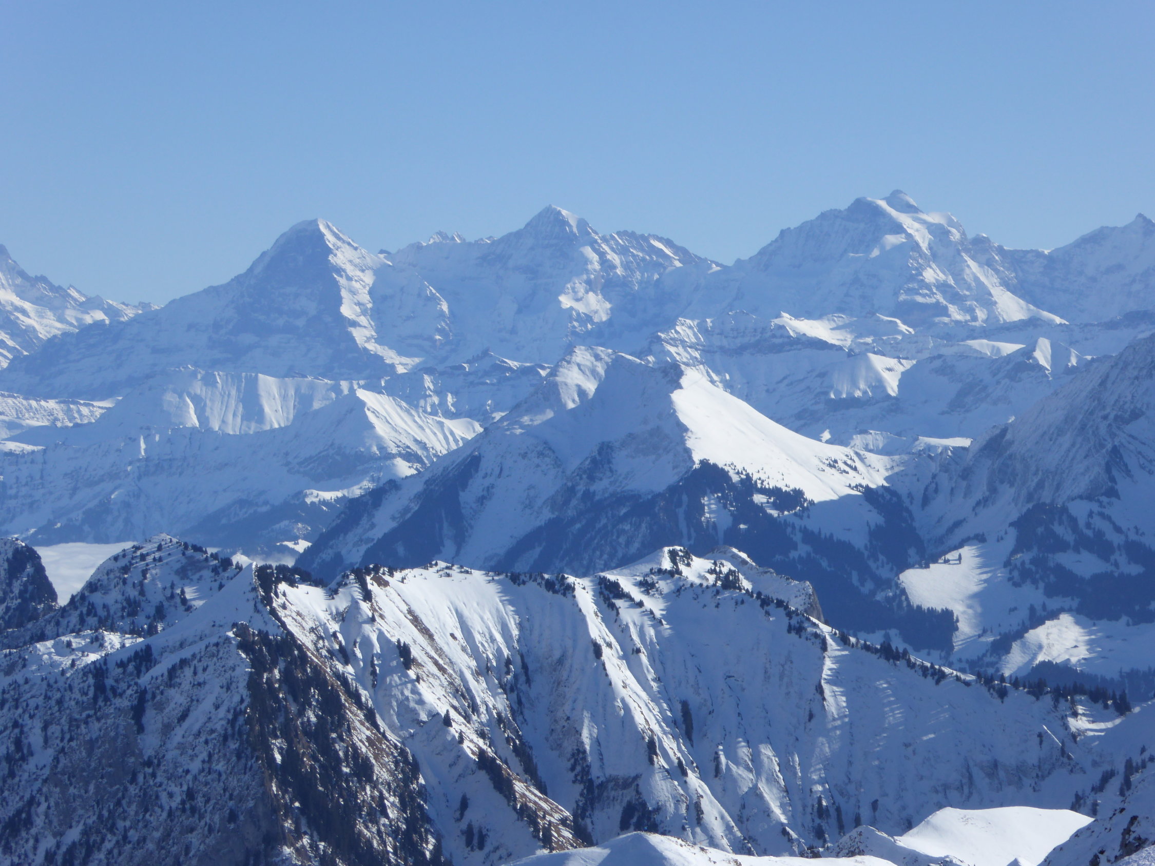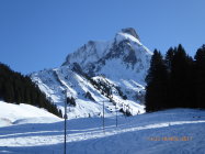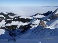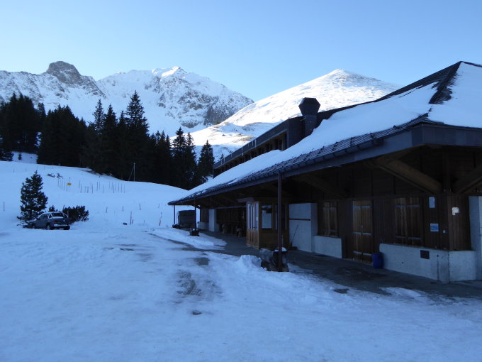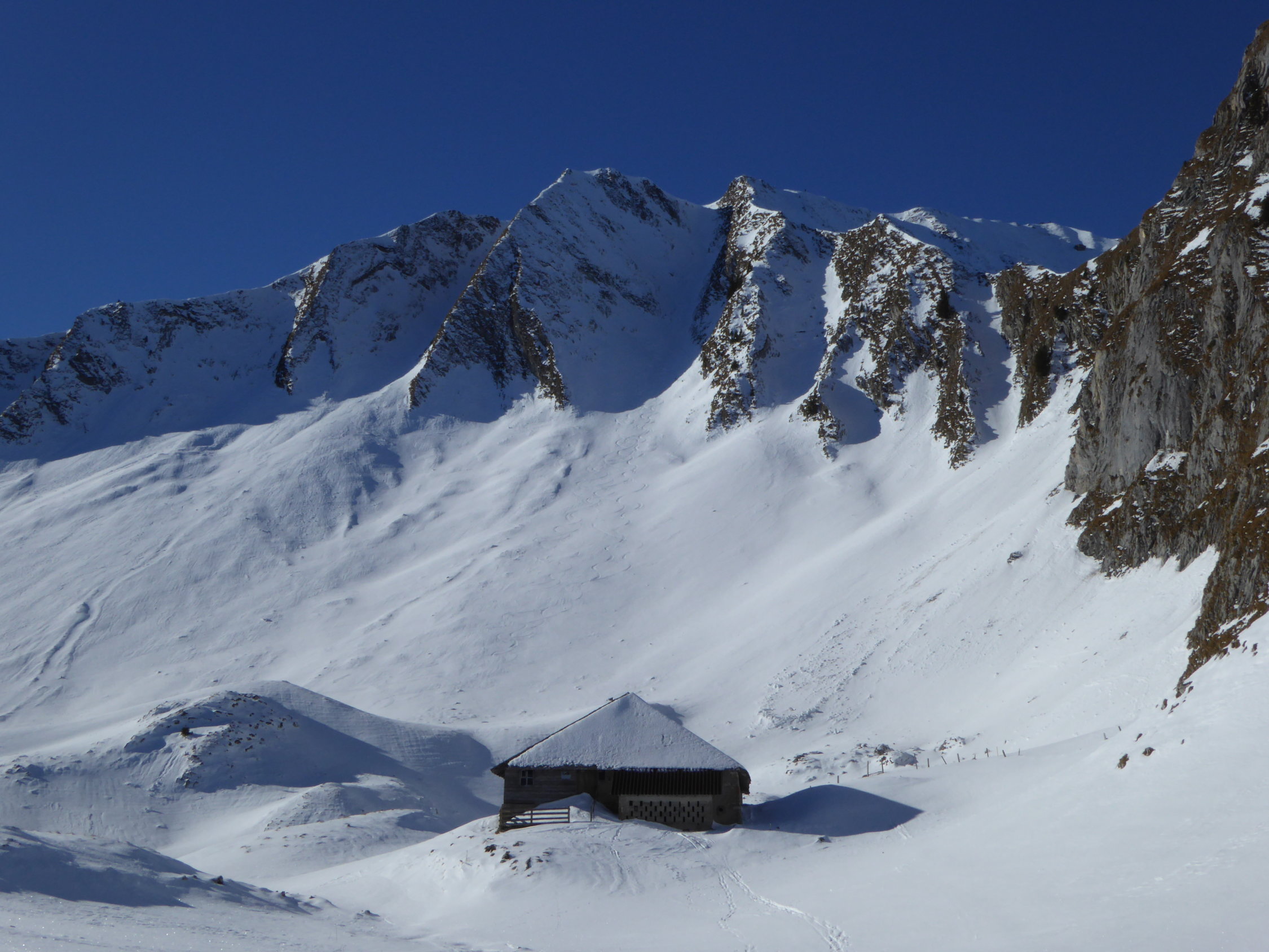 sehr schönes Wetter, blauer Himmel. An der unteren Gantrischhütte beim Start noch recht frisch, im Aufstieg zunehmend milder. Auf dem Weg ausreichend Schnee zum Aufstieg und Abfahrt, im freien Gelände sehr wechselhaft von Pulver, windgepresstem Pulver bis hin zur brettharten Piste; stellenweise sehr wenig Schnee, Steine und Pflanzen zu sehen .Aufstiegsspur leider von Schneeschuhgehern stellenweise arg perforiert.