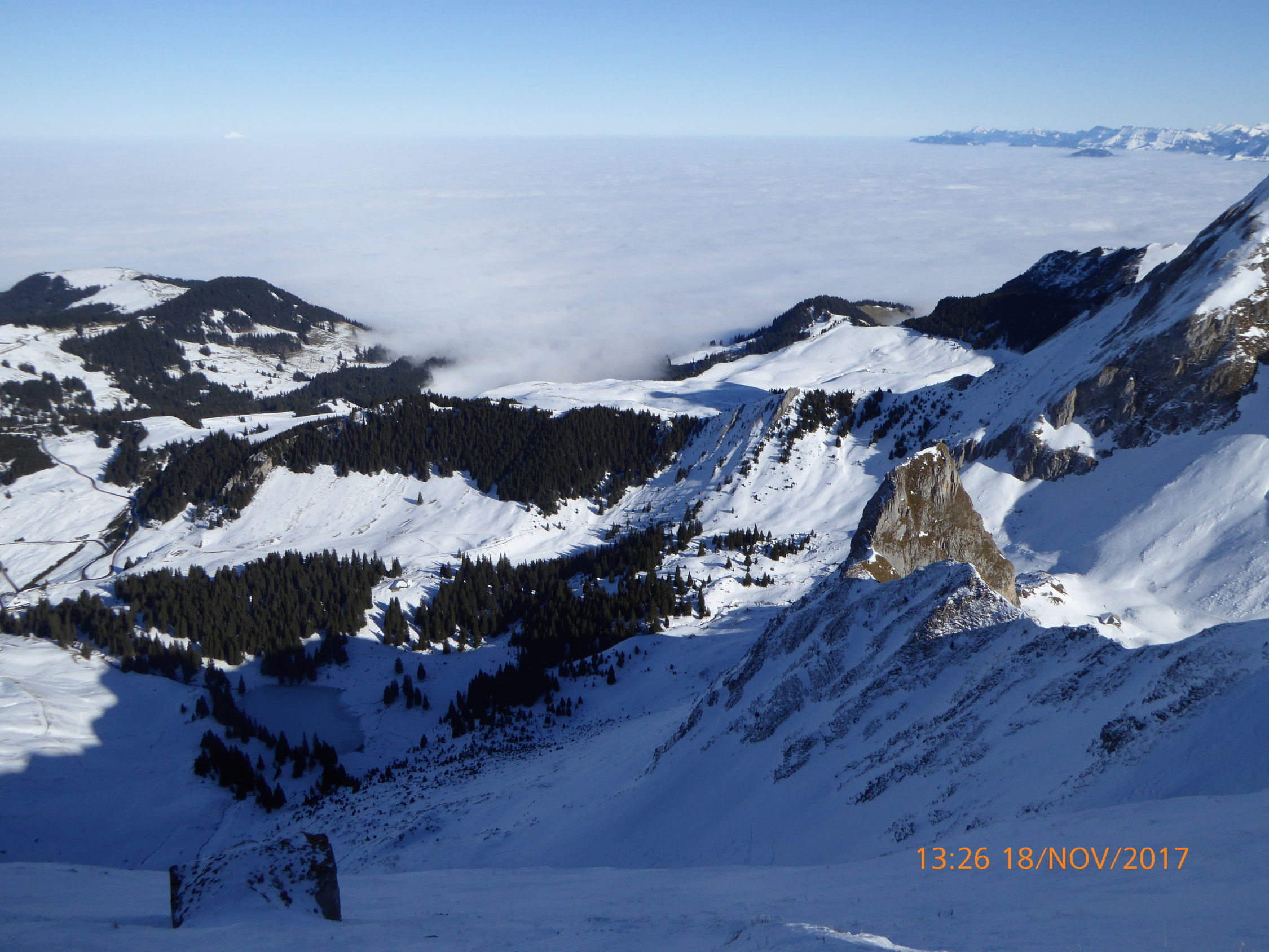 Die Stein-Ski ins Auto und ab zum Gurnigel. Ein Privileg nach dem letzten Winter schon Mitte November eine Skitour zu gehen. Schönes Tourengebiet mit toller Aussicht nach Süden. Berghaus Gurnigel geschlossen, aber Gaststube der Gantrisch-Skilifte geöffnet. Sonne vor der Hütte bis etwa 3 Uhr.