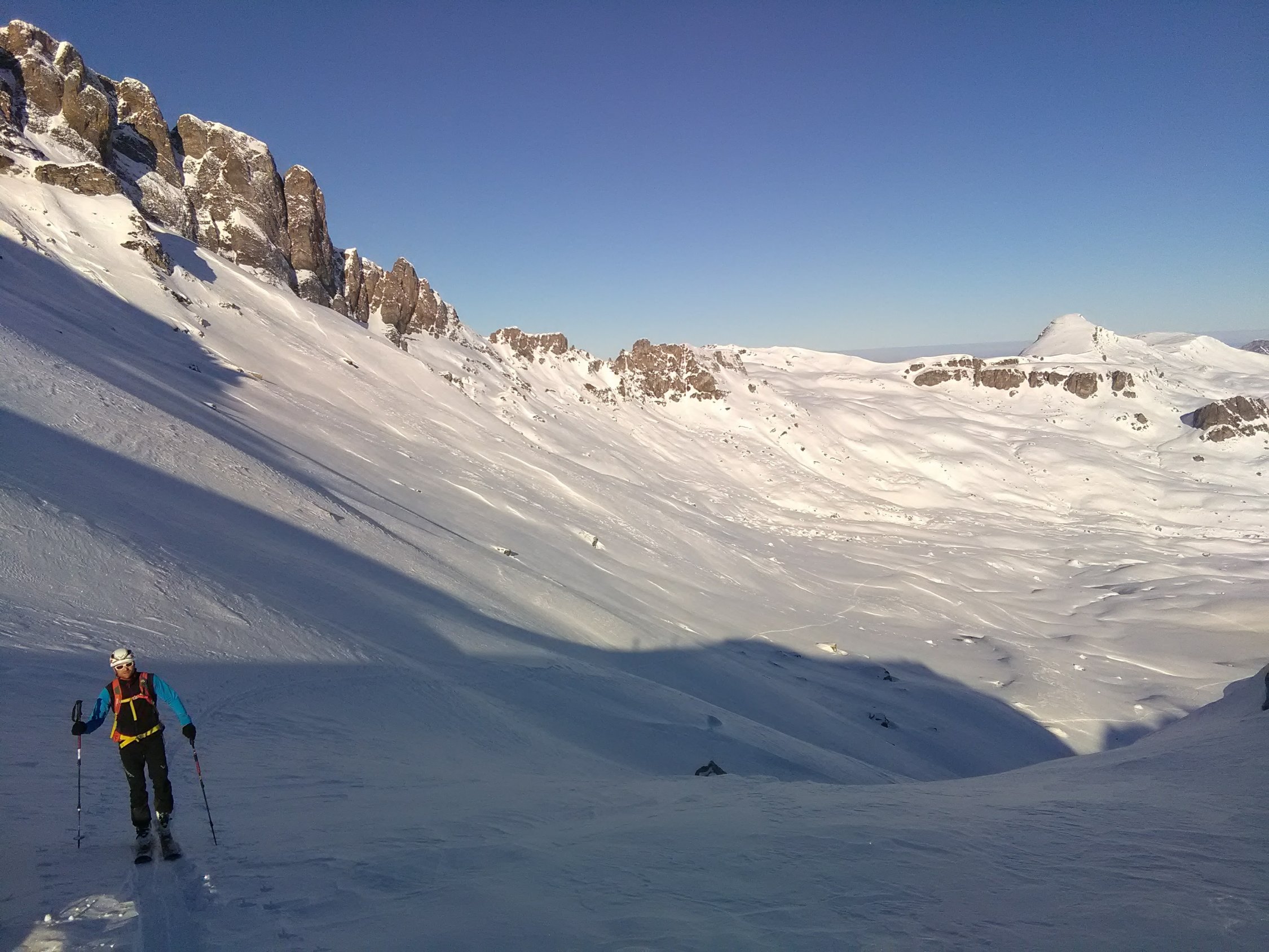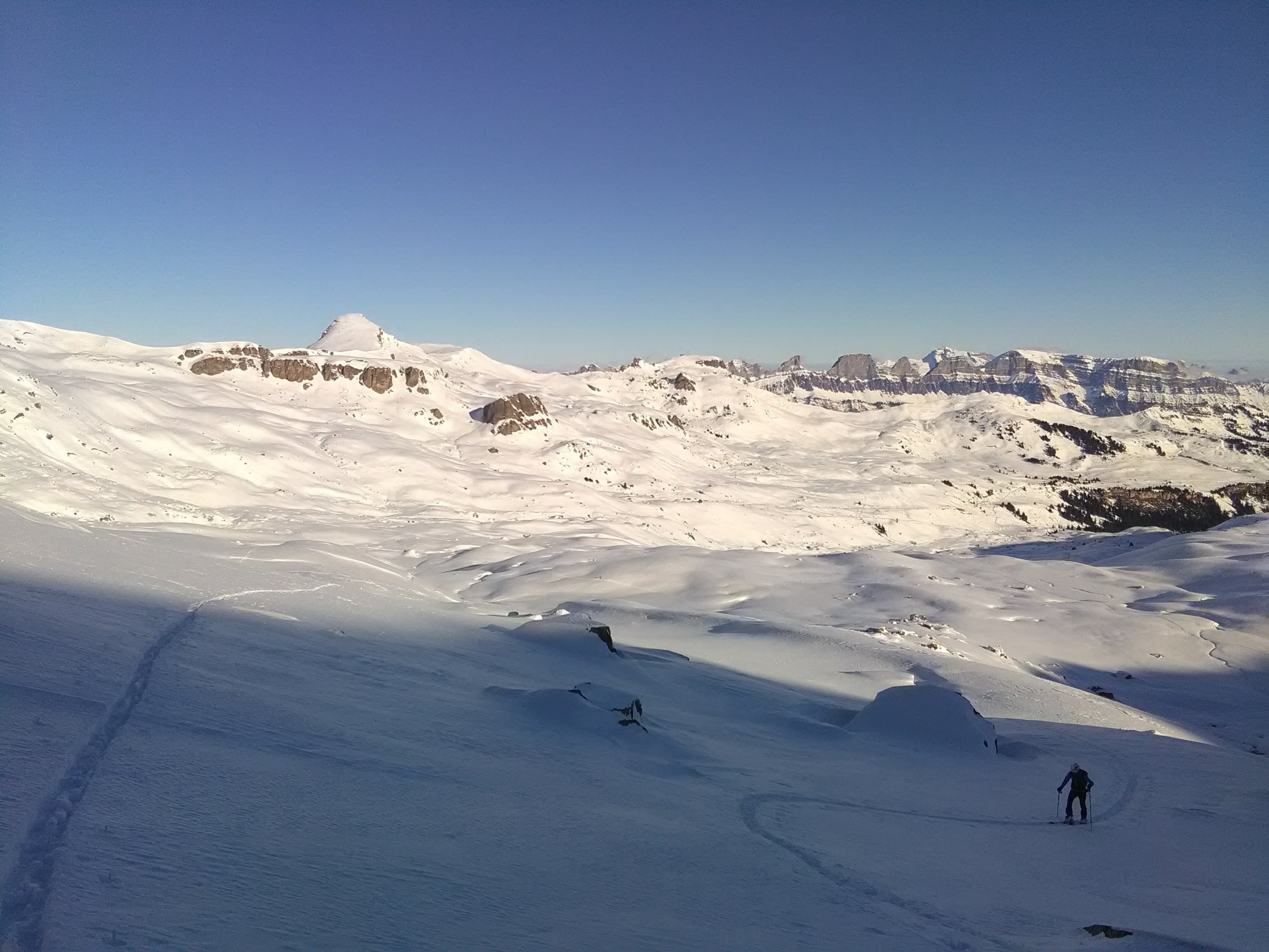 Eine tolle Tour mit gut 23 km und gut 2'000 Hm. Es sind ein paar Fellmontagen notwenig, um diese Tour so durchzuführen. Dies ist aber bei einem so tollen Tag wie heute nicht weiter hinderlich und auch die eher kurzen aber durchwegs knackigen Abfahrten bringen immer wieder Abwechslung in den Tag.