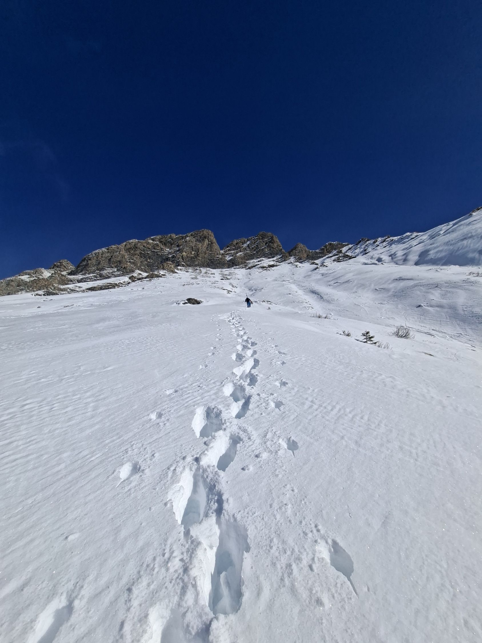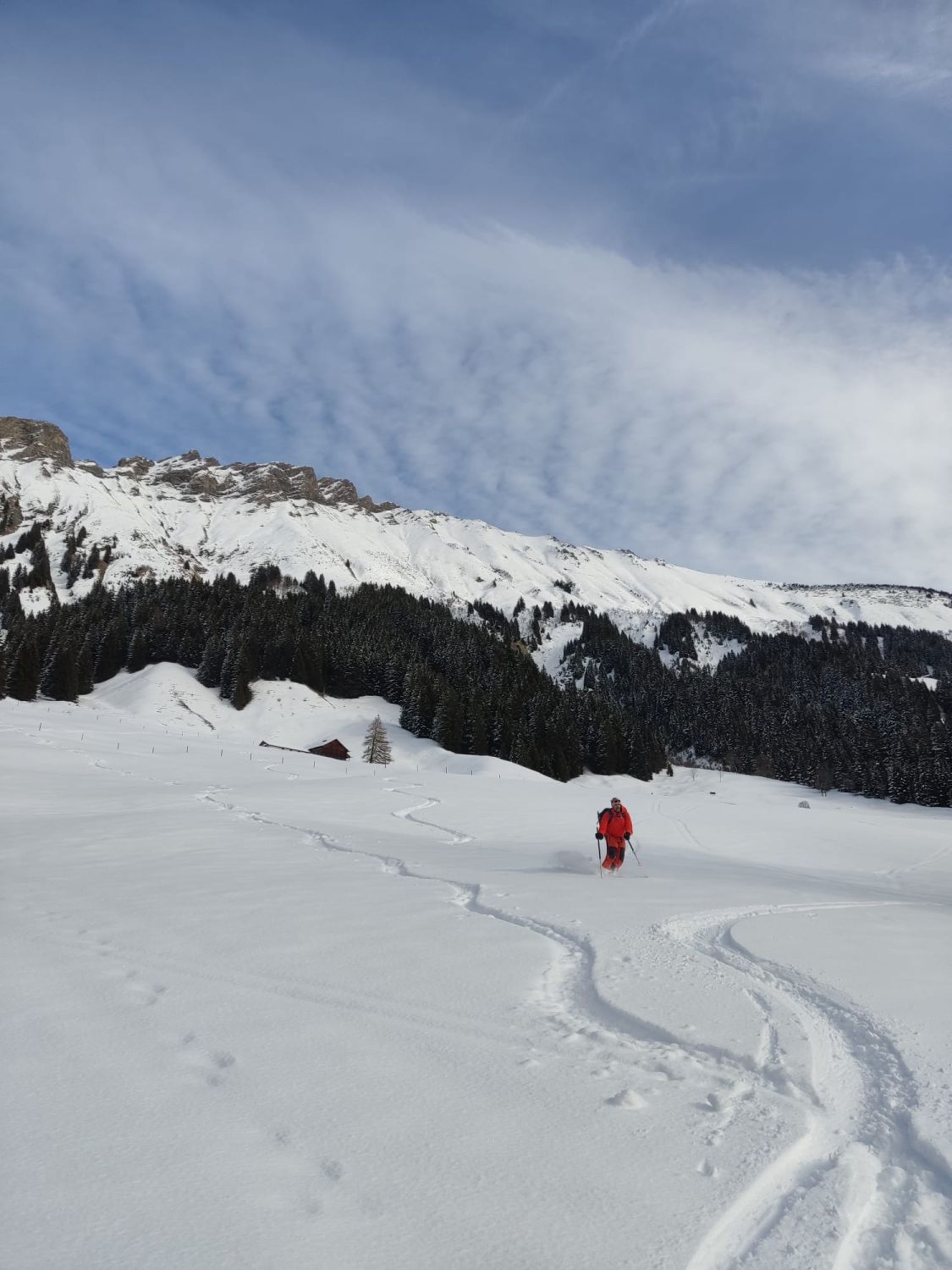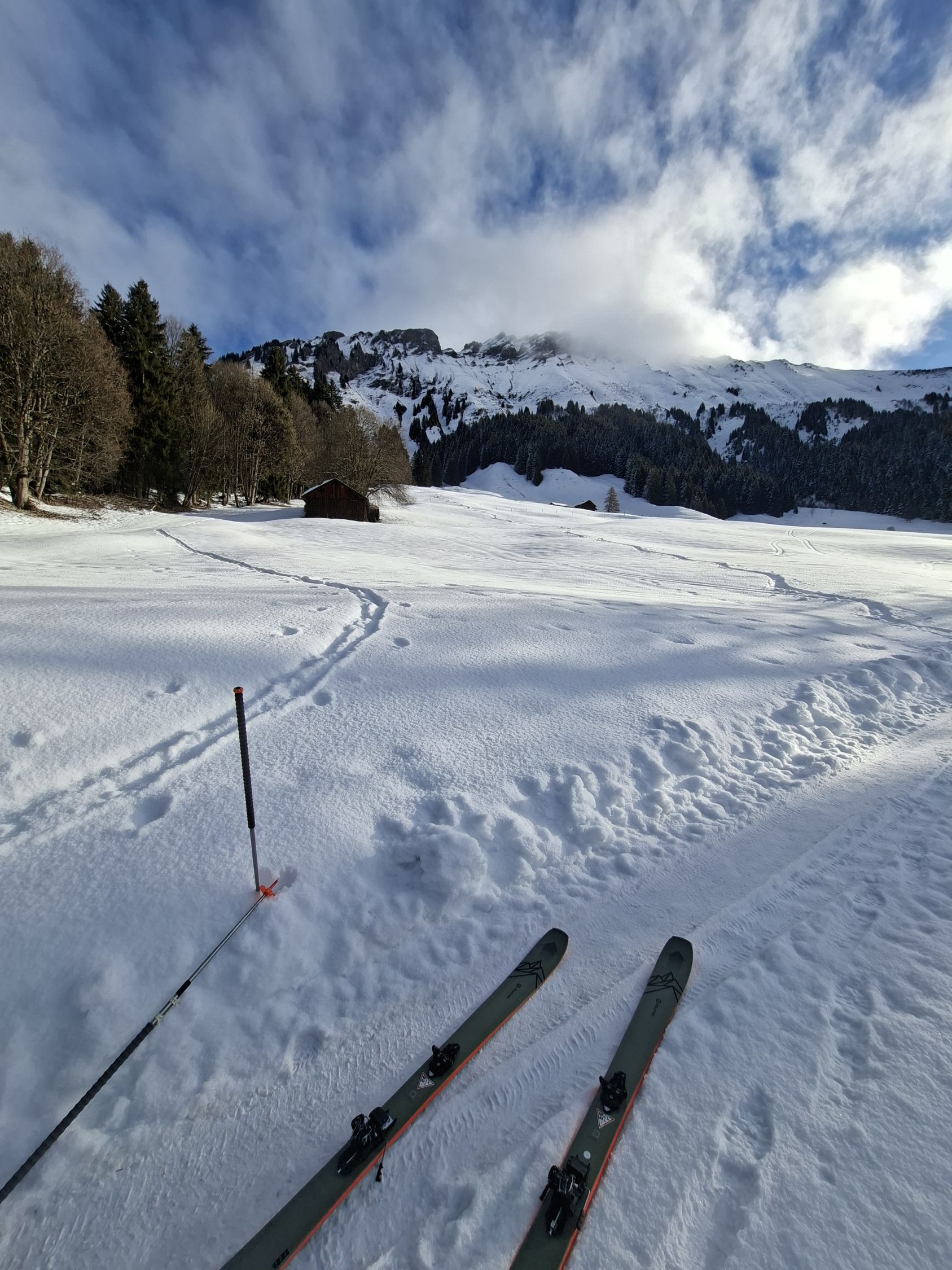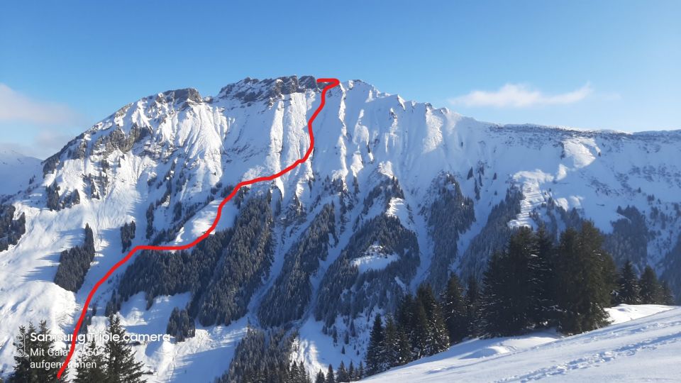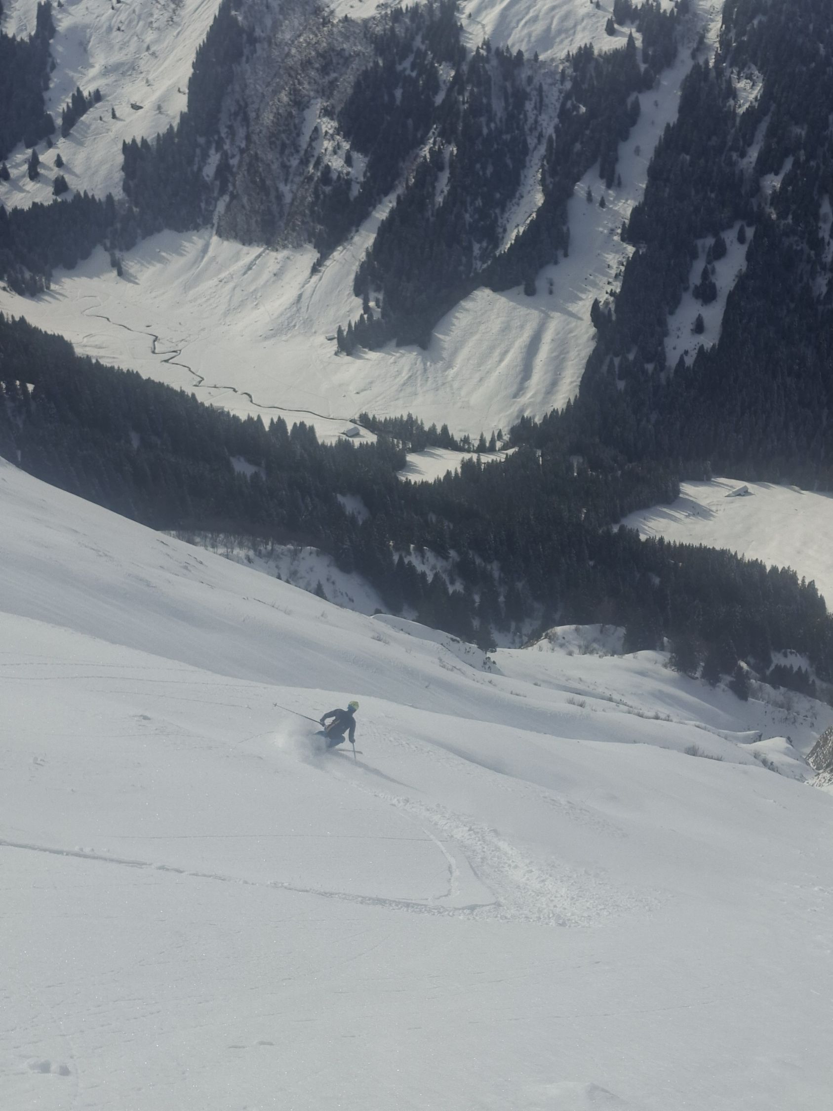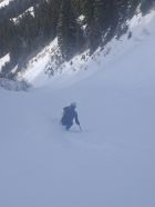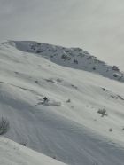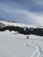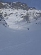 Ab Start genug und gut Schnee.Sind über Alp la Vousique ausgestiegen.Haben dann gesehen dass unser Zielculi von nahe fast Schneefrei war .Desshalb Planänderung und wieder mal Richtung W-Wand. Sind dann bis unter Felsriegel hoch (ca. 50hm unter Gratausstieg)und wegen hohenTemperatur und Zeit (14.00)den Ausstieg gelassen.Lieber Pulver und Sonne in Abfahrt....Hat auch gut gepasst.Auf Rippen noch schöner Pulver etwas gesprenkelter eisigen Unterlage unhomogen.aber nicht schlecht.Der Hammer war dann die Abfahrt durch den unteren Teil unseres geplanten Culis-300hm super feiner Pulfer 20-30 cm. ohne Wind....Dank Sonne auch die flachen Ausfahrtshänge unten raus wieder top.Wetter hat dann auch gerade zugemacht.Also tiptop