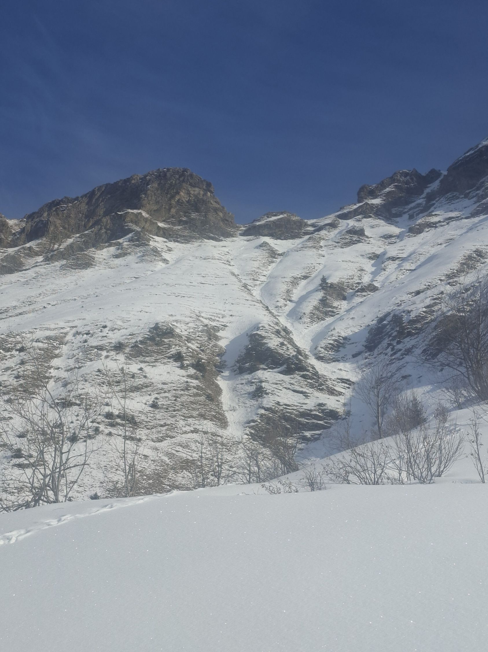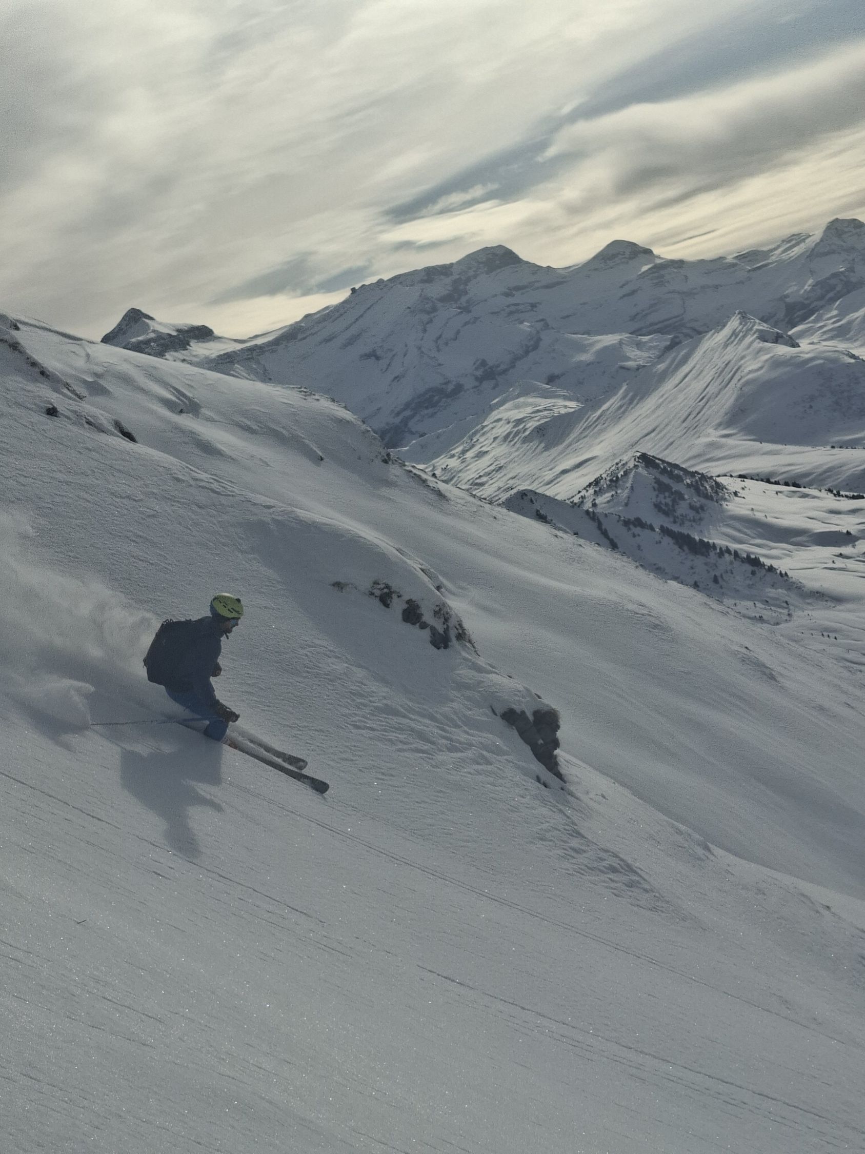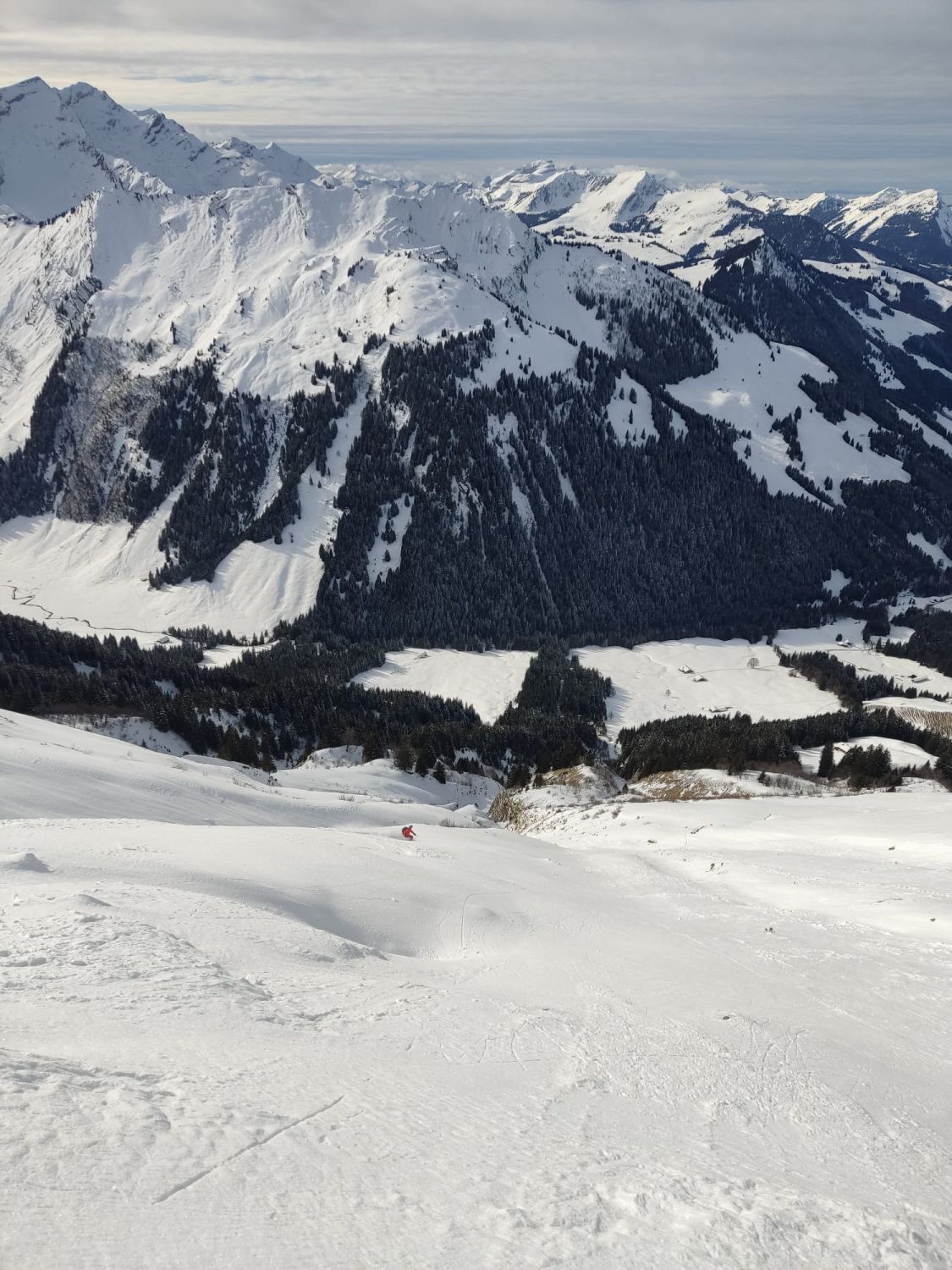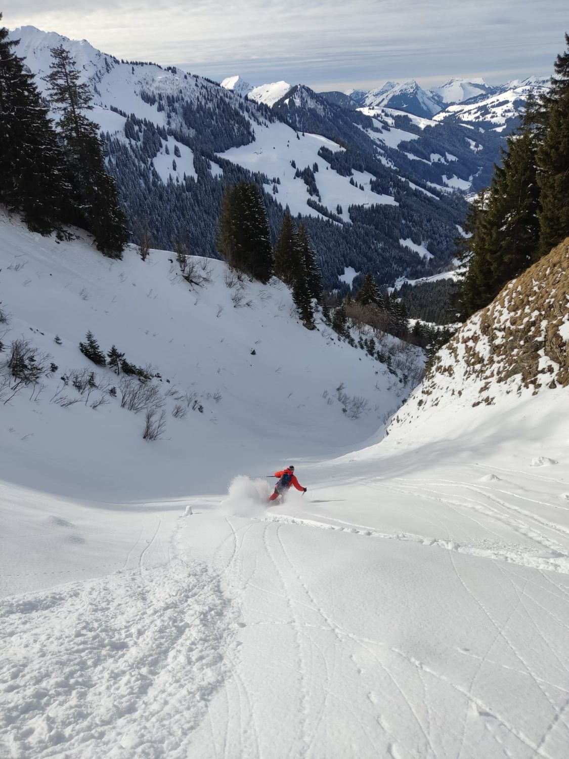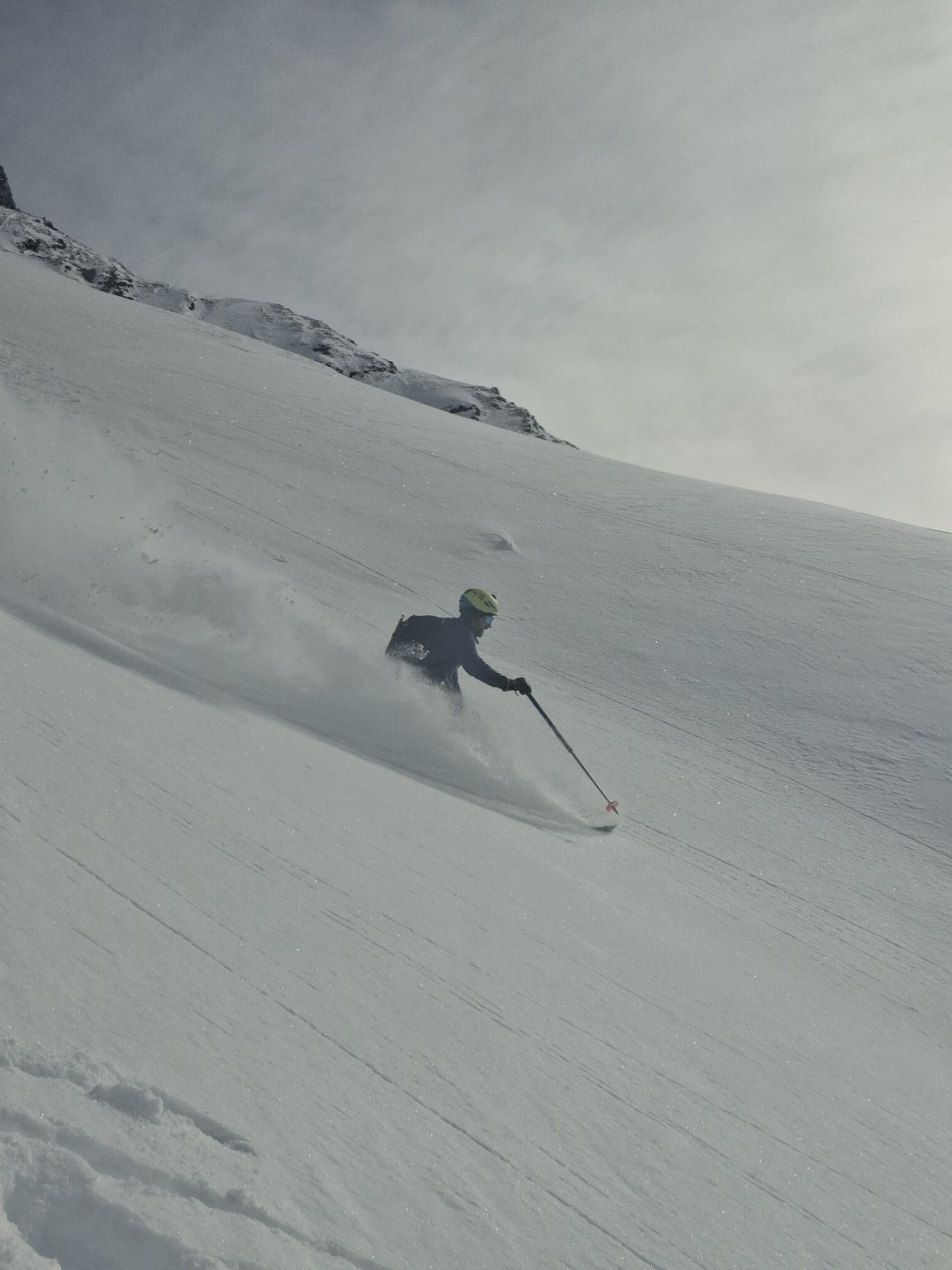 Ab Start genug und gut Schnee.Sind über Alp la Vousique ausgestiegen.Haben dann gesehen dass unser Zielculi von nahe fast Schneefrei war .Desshalb Planänderung und wieder mal Richtung W-Wand. Sind dann bis unter Felsriegel hoch (ca. 50hm unter Gratausstieg)und wegen hohenTemperatur und Zeit (14.00)den Ausstieg gelassen.Lieber Pulver und Sonne in Abfahrt....Hat auch gut gepasst.Auf Rippen noch schöner Pulver etwas gesprenkelter eisigen Unterlage unhomogen.aber nicht schlecht.Der Hammer war dann die Abfahrt durch den unteren Teil unseres geplanten Culis-300hm super feiner Pulfer 20-30 cm. ohne Wind....Dank Sonne auch die flachen Ausfahrtshänge unten raus wieder top.Wetter hat dann auch gerade zugemacht.Also tiptop