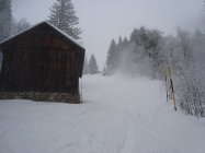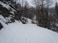 Man kann z.ZT.die Ski an der Kurve (Startpunkt) anlegen. Schnee ab da grad ausreichend für Aufstieg und Abfahrt.