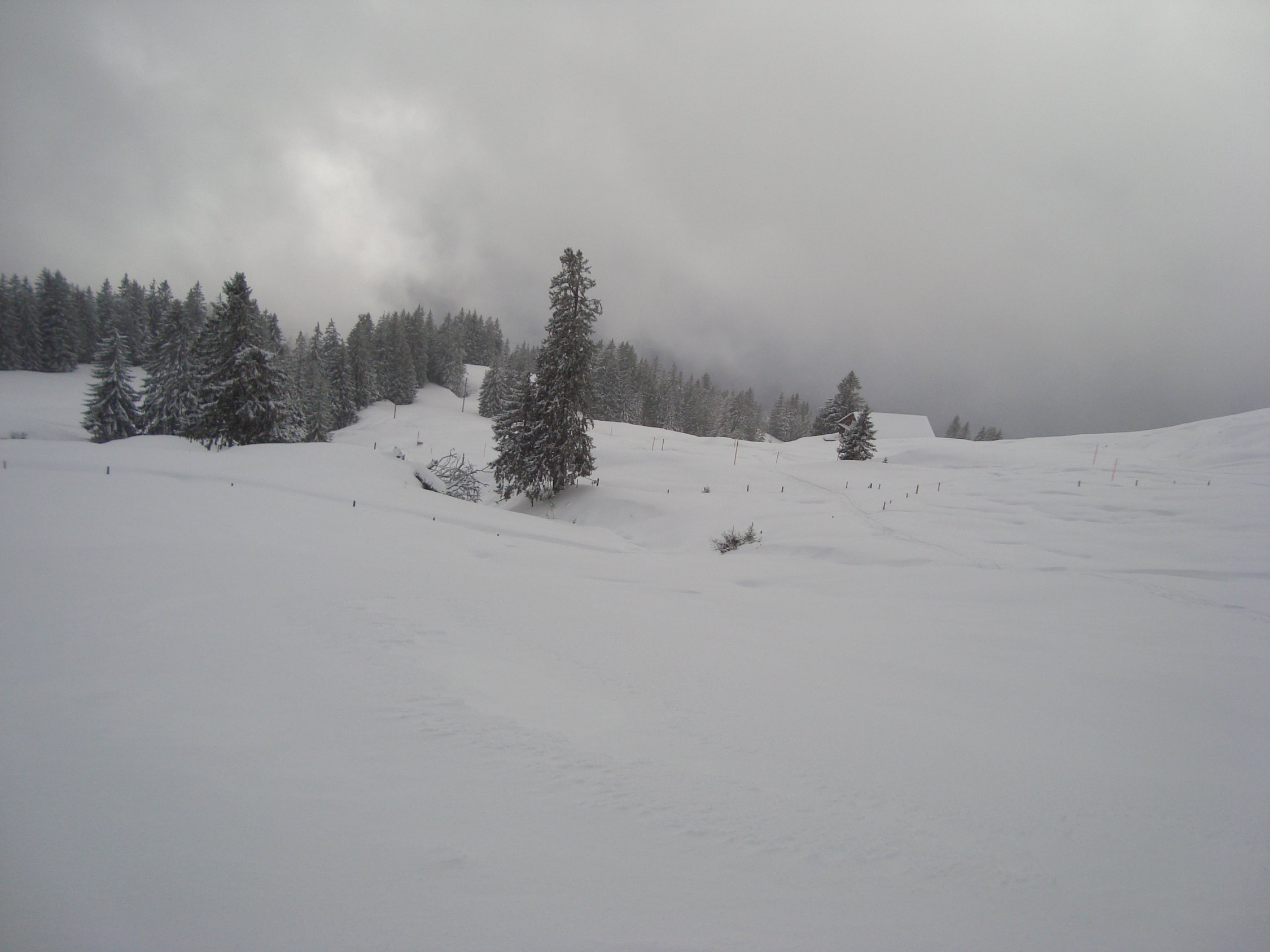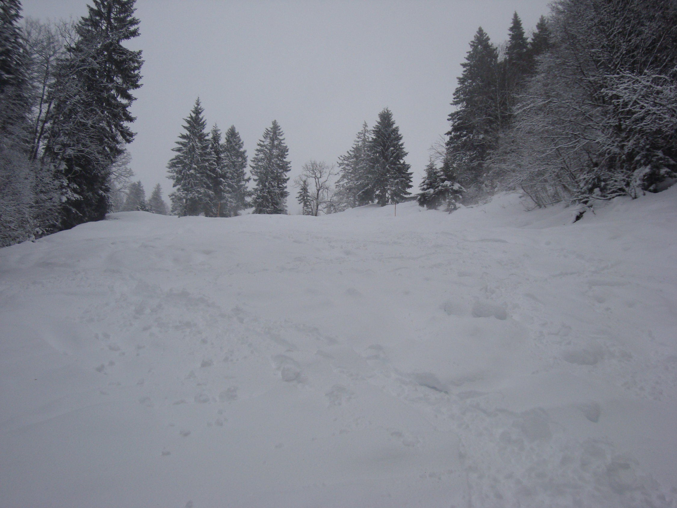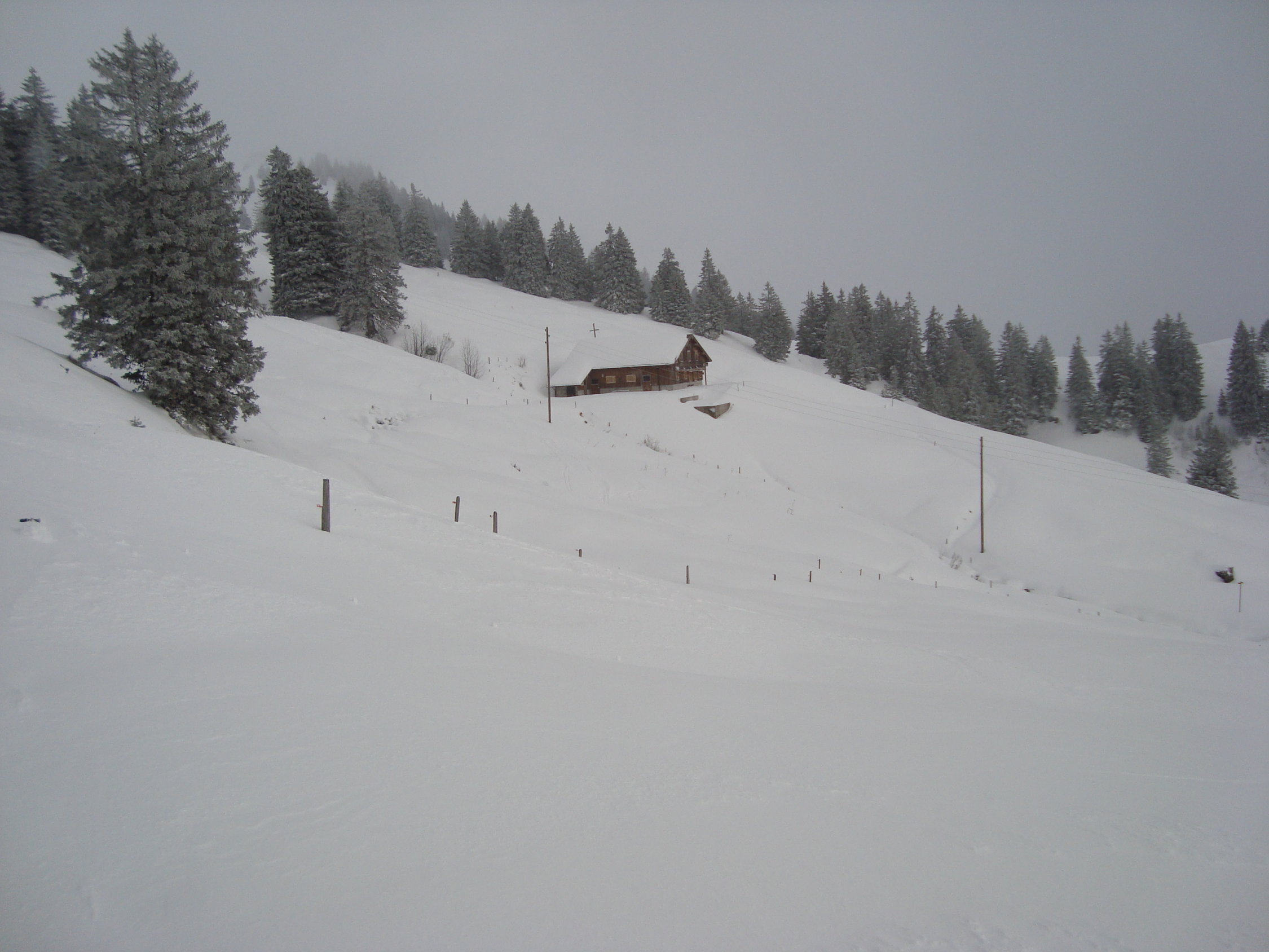 Bis ca. 1100M.ü.M sehr durchfeuchtet(Regen). Oberhalb schwerer Pulver, teils etwas windverpresst tragend. Ab ca. +-1300M.ü.M. kann man von einer Unterlage ausgehen.