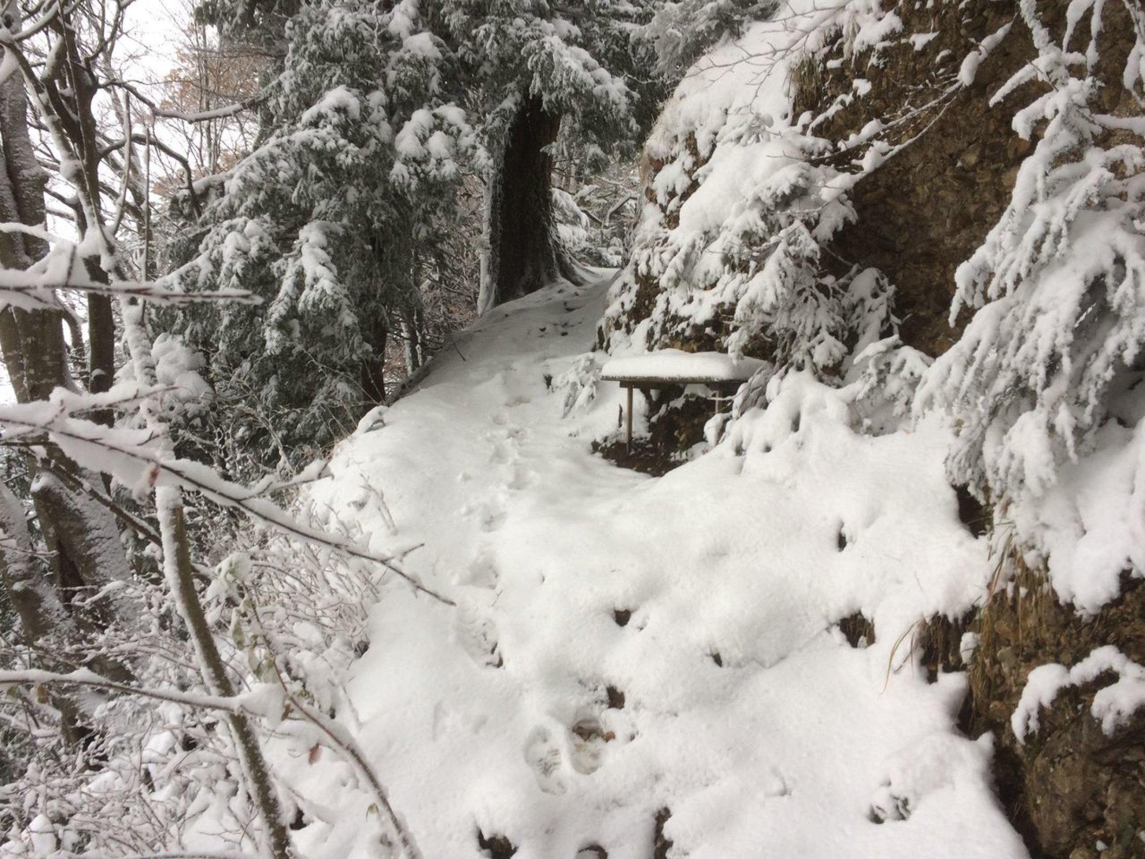 Novembernass mit Schneematsch und Schnee. Zwischendurch stärke Regenschauer (ich war noch zu wenig hoch oben, da wäre es Schnee gewesen). Mit guter Kleidung jedoch kein nennenswertes Problem. Auf dem Pfänder schöner und tiefer Winter.