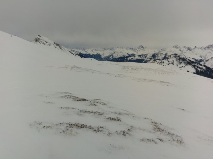 Start bei der Sunneggbahn. Heute hohe Bewölkung, Sonne kam nie durch, Aufstieg über Alpe Ragaz, alles stark verblasen, sehr wechselnde Schneeverhältnisse, starker Wind, deshalb nur bis zur Bergstation der 6er Sesselbahn Ragaz (2025m) und nicht auf den Gipfel. Für den Aufstieg wären Harscheisen gut gewesen. Abfahrt dann über noch nicht präparierte Piste mit Plattenpulver, Hartschnee, Harschdeckel usw.