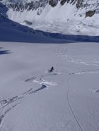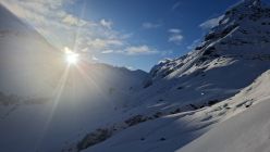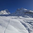 Durchgehende Schneedecke auf gesamter Route. In sehr guter Spur ins Klostertal. Weiterer Weg bis Litznersattel alles gespurt. Der erste Steilaufschwung im Verhupftäli ging sehr gut. Weiter dann im flachen Teil viele Setzungen. Wir wollten ursprünglich auf die Sonntagspitze, zu gefährlich zudem kam auch teilweise Nebel auf. Abfahrt vom Litznersattel bis kurz unter die Saarbrückner Hütte sehr schön. Auf Spur zur Seelücke und zur Seehornscharte. Wenig Spuren im Gelände, Endlich mal eine unbeschwerte Abfahrt (keine Steine) über den Seegletscher bis auf eine Höhe ca. 2450m. Anstieg zur Schweizer Lücke bereits gespurt und dann wieder eine traumhafte Abfahrt über den Schweizer Gletscher.