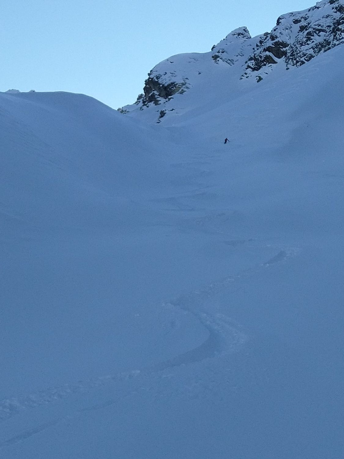Keine Anzeichen mehr - keine Setzungsgeräusche keine Anrisse. Dennoch ist es zur Zeit lawinentechnisch nicht zu unterschätzen, achtsam sein sorgsame Routenwahl, umdrehn wenns sein muss!!!