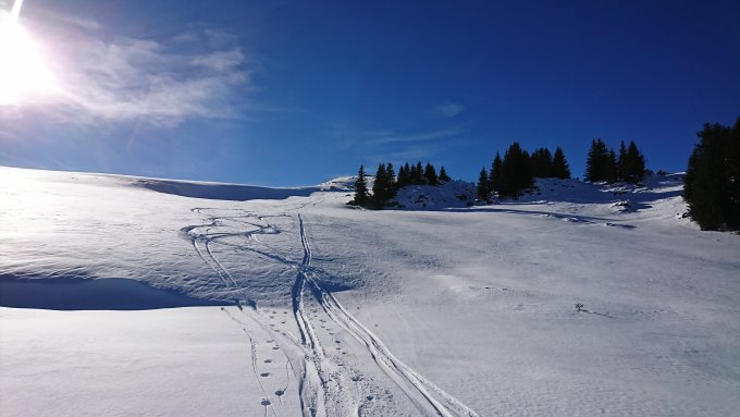 In Sonnen abgewandten Hängen noch wunderbare pulvrige Verhältnisse. Ein Traum.