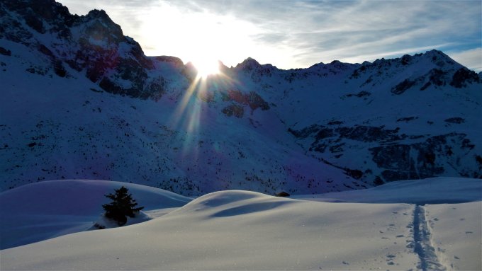 Von Partnun bis ca. 2000 müM leichte Kruste über dem Pulver ( Feuchter Neuschnee von Gestern ) dann Pulver bis ca. 2600 müM nun war der Pulver zunehmend verblasen.