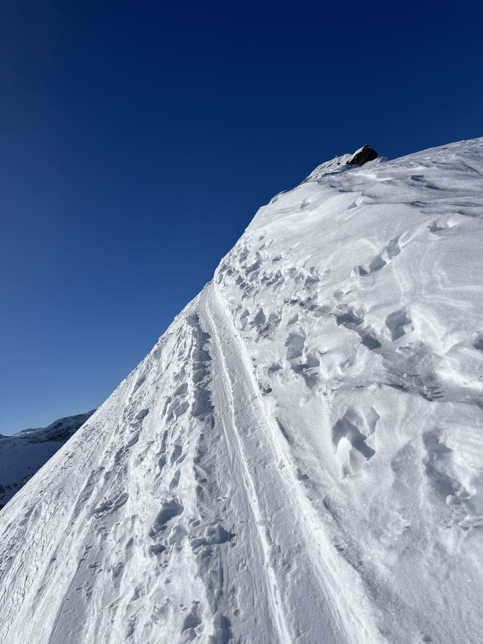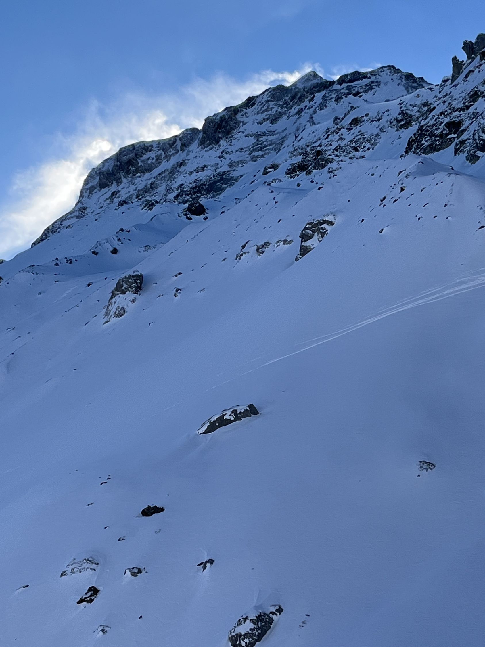 Bin auf die erste Bahn um 8.45 Uhr Richtung Engstligenalp. Bei -10 Grad gestartet. Wollte eigentlich auf den Wildstrubel. Je höher ich kam desto mehr hatte es stark gewindet. Die Schneeverwehungen wurden immer krasser und somit stieg die Lawinengefahr. Deshalb bin ich umgekehrt und Richtung Ammertenspitz aufgestiegen. Die Schneeverhältnisse am Ammerten sind noch erstaunlich gut mit schönem Pulver, obwohl die Sonne den Hang bestrahlte. Nebst den Spuren findet man noch etwas Platz für neue Spuren. Es war traumhaft schöner Pulverschnee. In einem Schattenhängli habe noch ein kleines Schneebrett ausgelöst. Das zeigt wie angespannt die Lawinensituation ist. Es ist Vorsicht geboten.