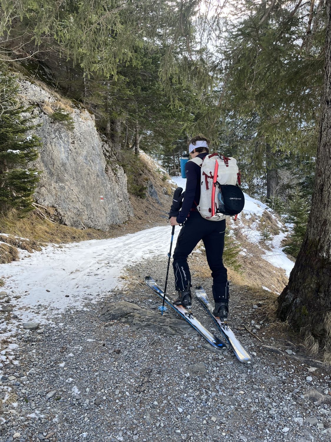Im Aufstieg auf Strasse sehr wenig Schnee mit vielen Steinen - machbar im Aufstieg aber vollkommen ungeeignet für die Abfahrt.