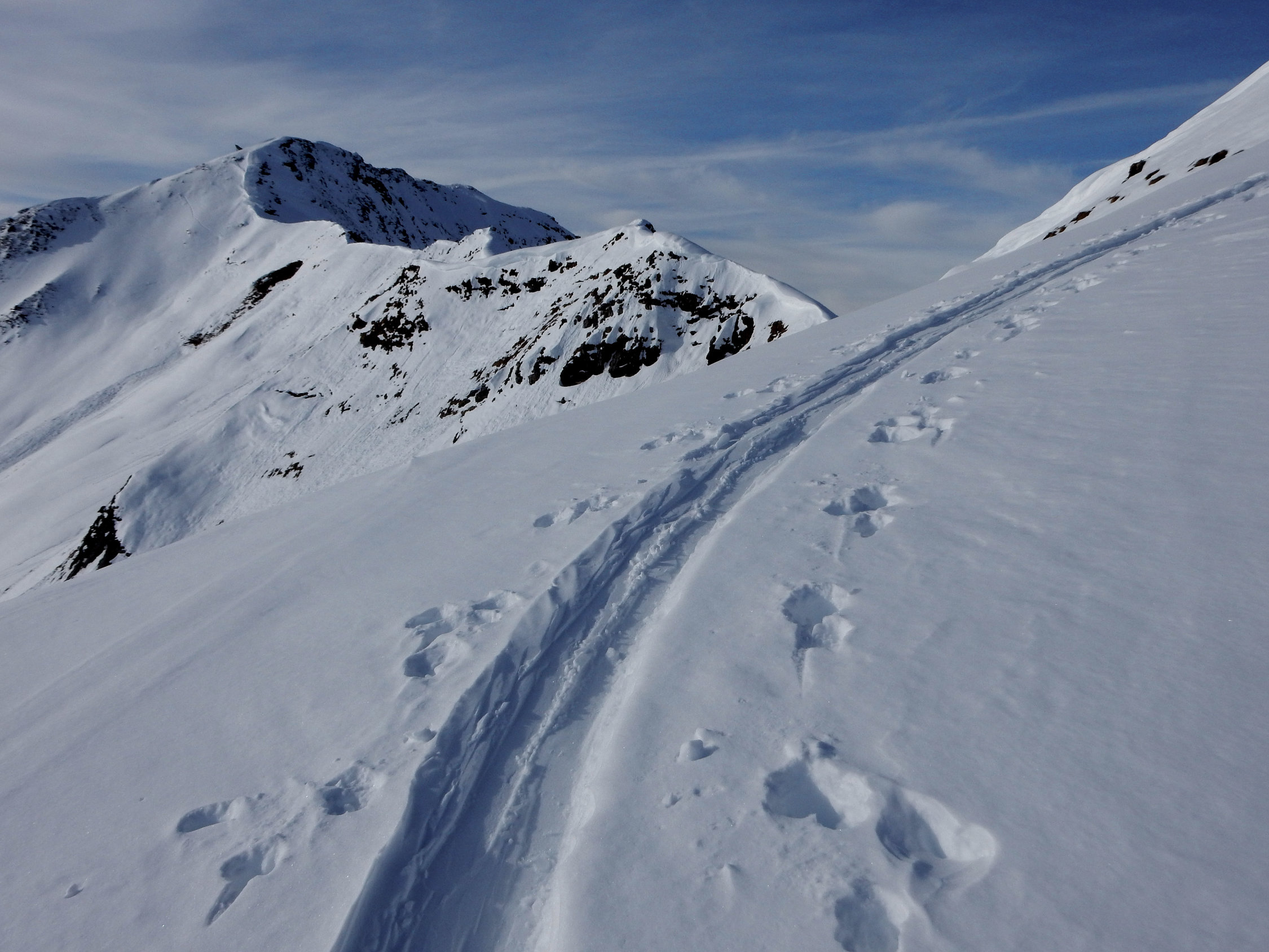 Ab Parkplatz Rüti konnte man nach fünf Minuten bereits die Ski montieren. Durchgehende Schneedecke, ab der Alp Garschina liegt sogar für die Jahreszeit sehr viel Schnee. Das Wetter hat auch gehalten, was die Wetterfee versprochen hatte, der Föhn blies nur mässig.