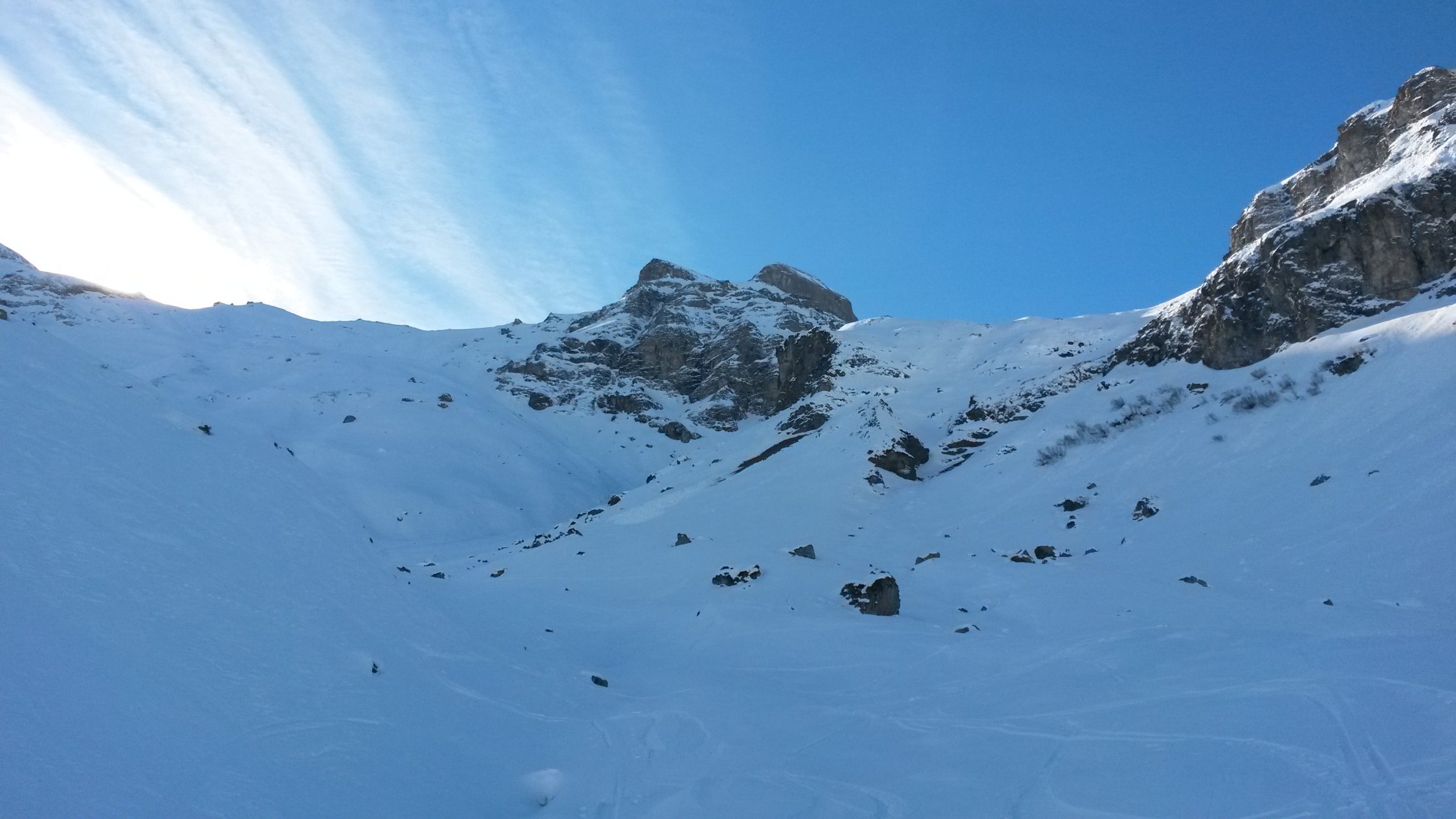 Wechselnde Schneearten in der Abfahrt, aber viel besser als ich beim Aufstieg gedacht habe, schon fast super als die Sonne sich gezeigt hat.