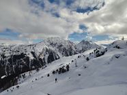 Abfahrt oben sehr gut: im sonnenabgewandten Hängen über 1600m 30cm aufgebauter "Pulver" mit gerade ausreichender Unterlage, kein Bodenkontakt, super zu fahren, wenige Spuren