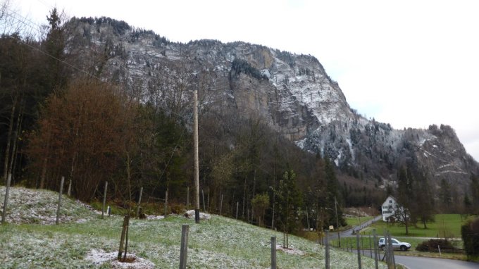 Steiler Waldboden, Nässe, Laub und frischer Schnee ergeben ein brisantes Gemisch, das umsichtiges und sicheres Gehen erfordet. Es gibt etliche ungemütliche Passagen bei denen die Halteseile und Tritthilfen gut helfen. Dank an jene fürs Anbringen. Fallbach, Feiatobel und Südgrat waren unverspurt. Auf dem Gipfel war es bitter kalt. Die Abstiegspassagen auf dem Leiterweg erforderten nochmals Konzentration. Bei zunehmender Vereisung sind Pickel und Steigeisen anzuraten.