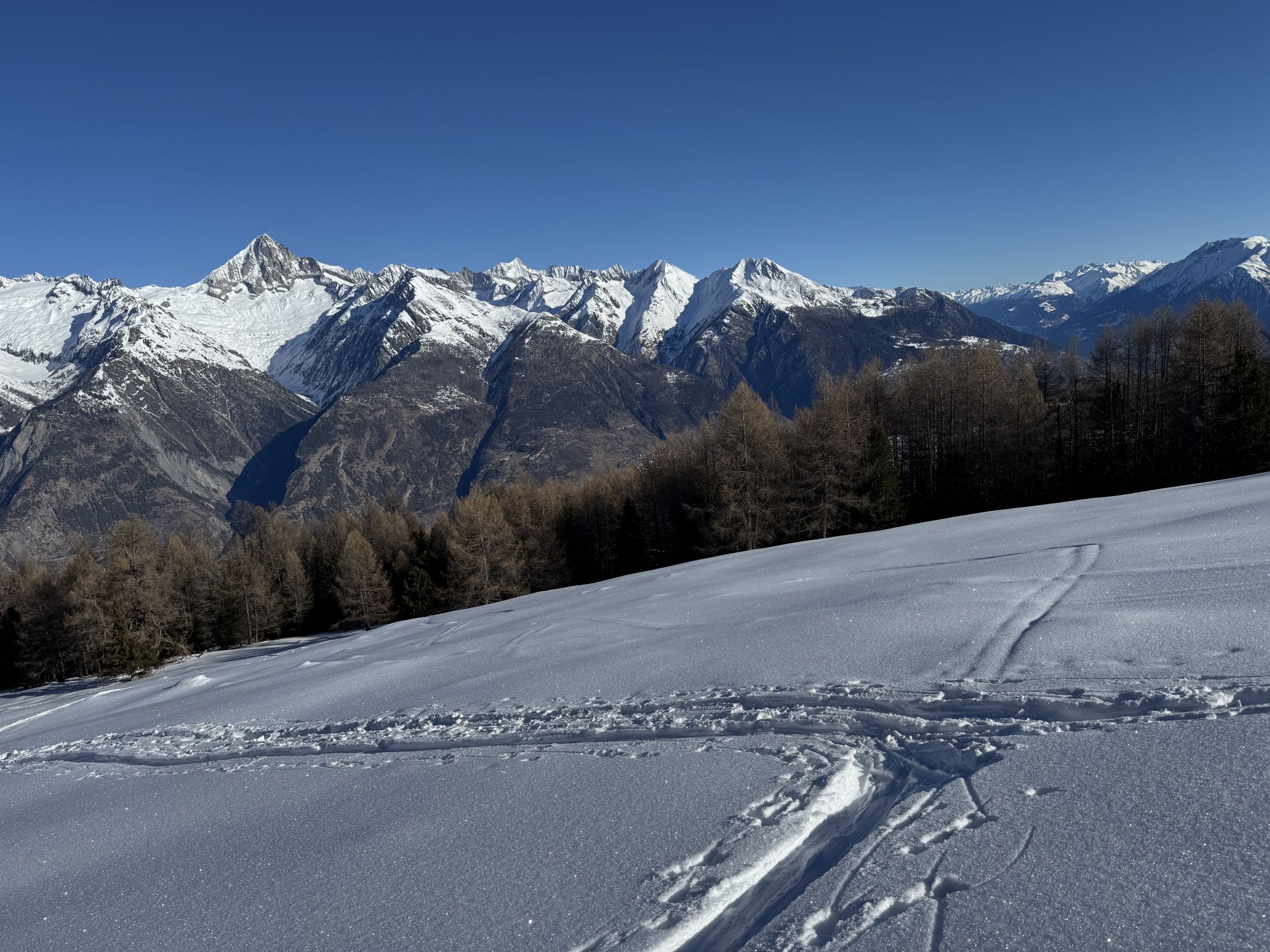 Wir sind auf ca. 2460m umgekehrt: bis 2300m vorsichtig fahrend (Steine…), dann sehr gut. Auf 2100m sind links abgebogen und dem gut fahrbaren Weglein zum Unners Senntum gefolgt. Ab dort Skipiste hinunter nach Unterbäch.