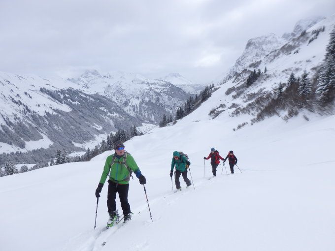 Bis zur Gräsalpe (1281) 10-20 cm lockerer pulvriger Neuschnee ohne Unterlage. Darüber eine wunderschön frischverschneite Winterlandschaft mit besten Pulverschneeverhältnissen. Sehr schöne Abfahrt bis zur Gräsalpe, von dort bis zum E-Werk nur über die Forststrasse möglich. Deshalb nur Note "gut".