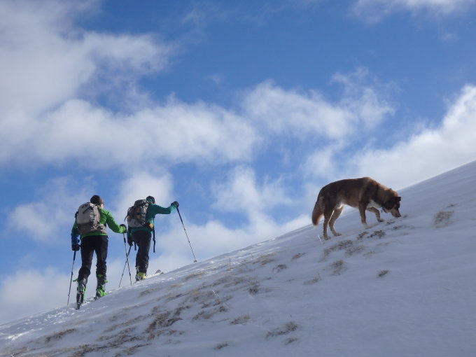 Im Gipfelbereich starke Windböen aus westl. Richtung. Triebschnee in den Mulden des Gipfelhanges. Ein kleineres Schneebrett und zwei kleinere Wechtenbrüche neben der Aufstiegsroute.