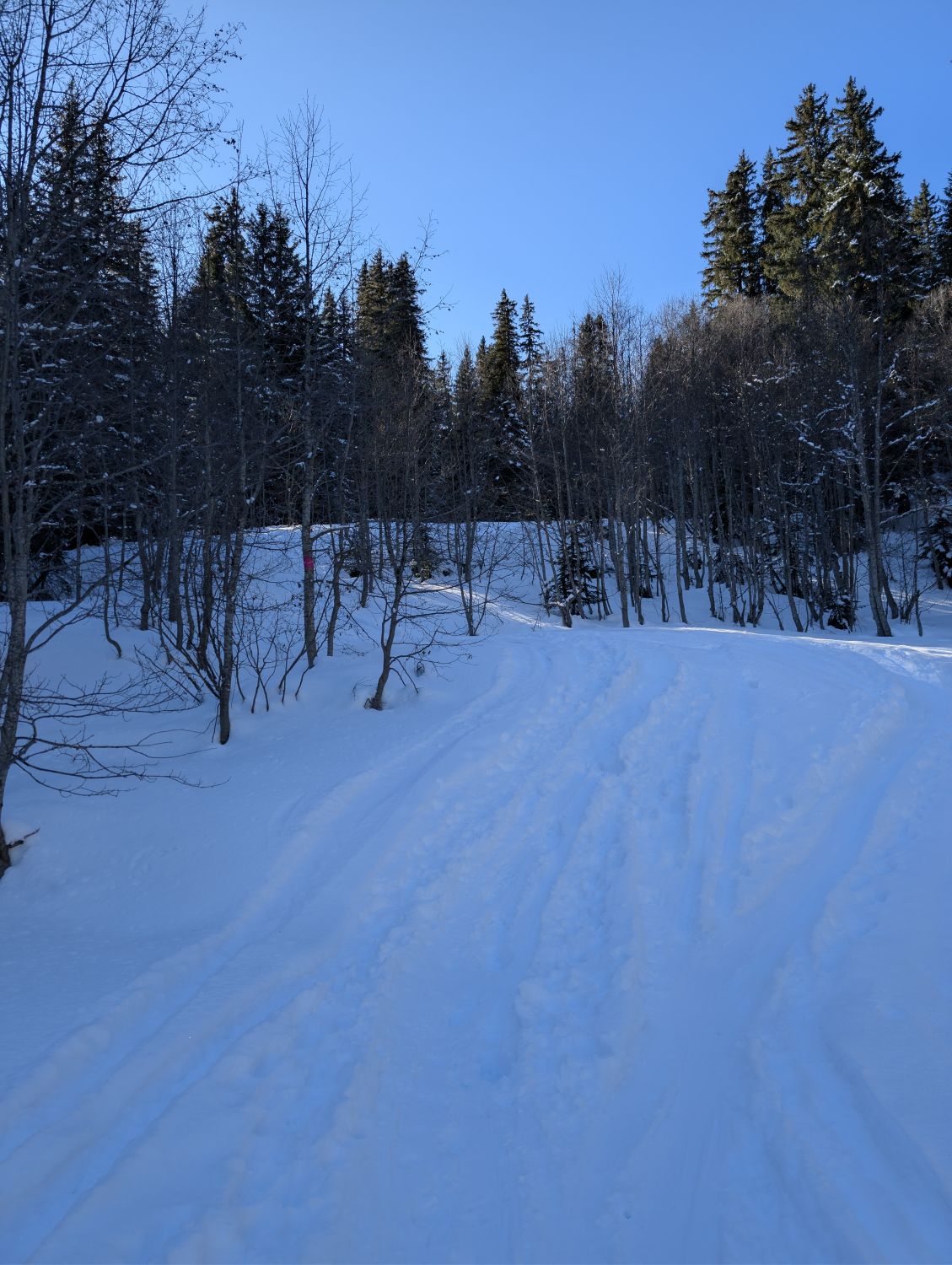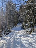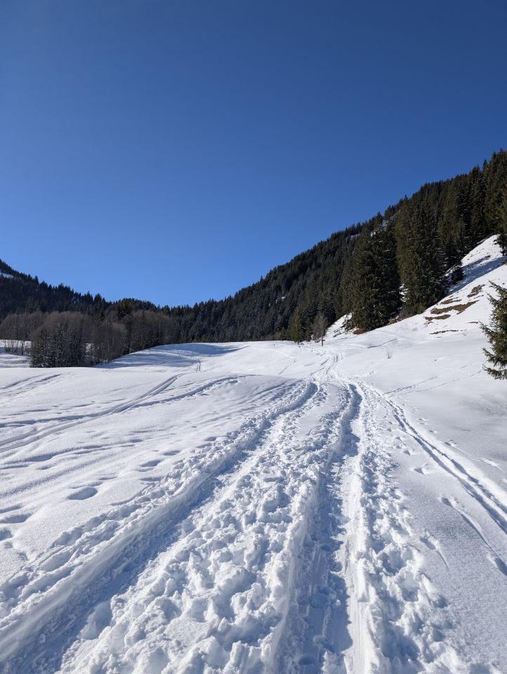 Die Hinterseestrasse war zwischen Hintersee und Höji geräumt, ab Höji bis zur Oberefangstrasse jedoch schneebedeckt. Da wir die Ski bereits abgeschnallt hatten, entschieden wir uns, den Fussmarsch konsequent fortzusetzen.