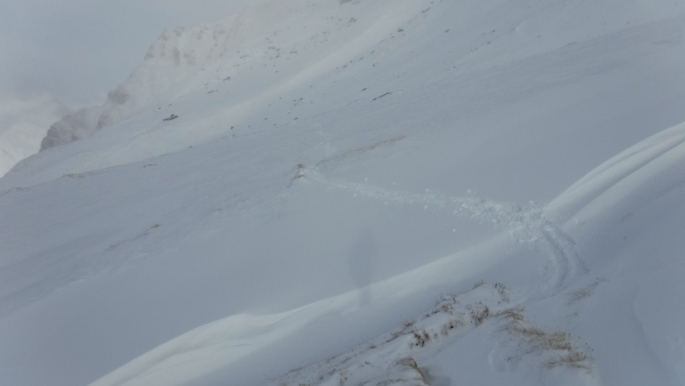 Die Südwestwände unterhalb der Cima del Muro waren bereits entladen (wohl gestern, oder vorgestern passiert). Es lag jedoch nicht fiel Zeugs auf den Hangflächen von I Traversoni.