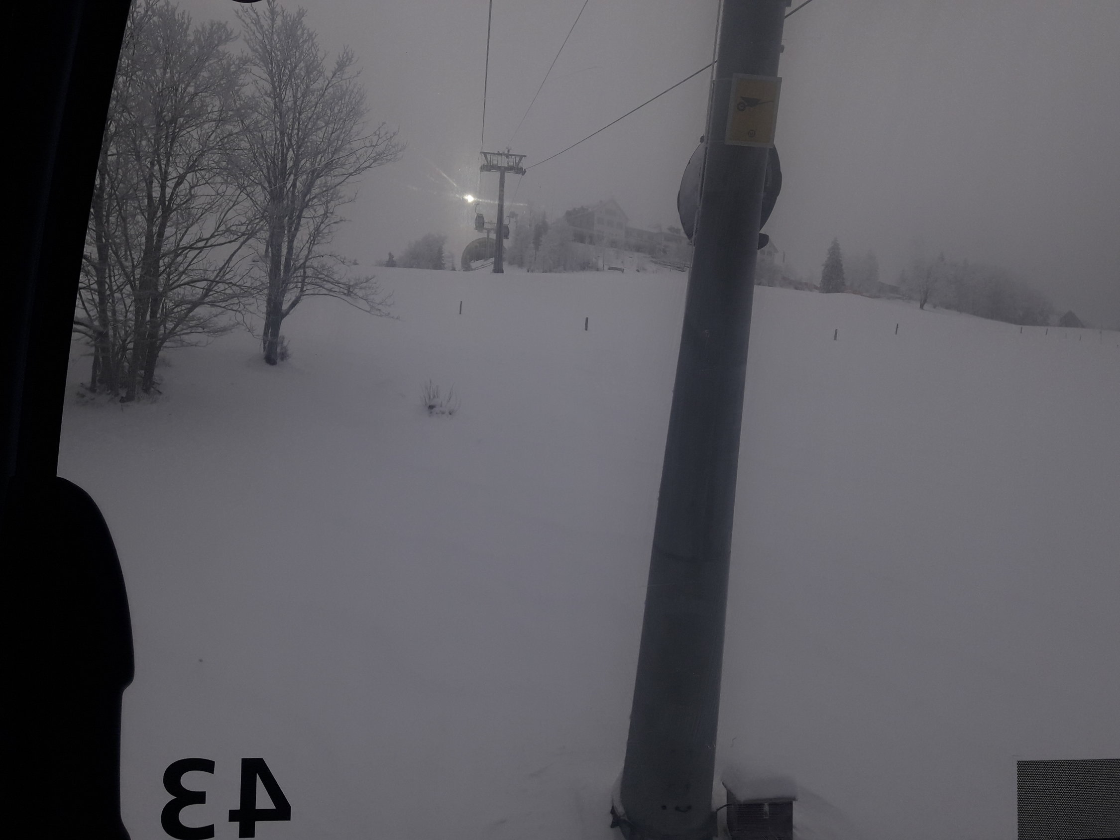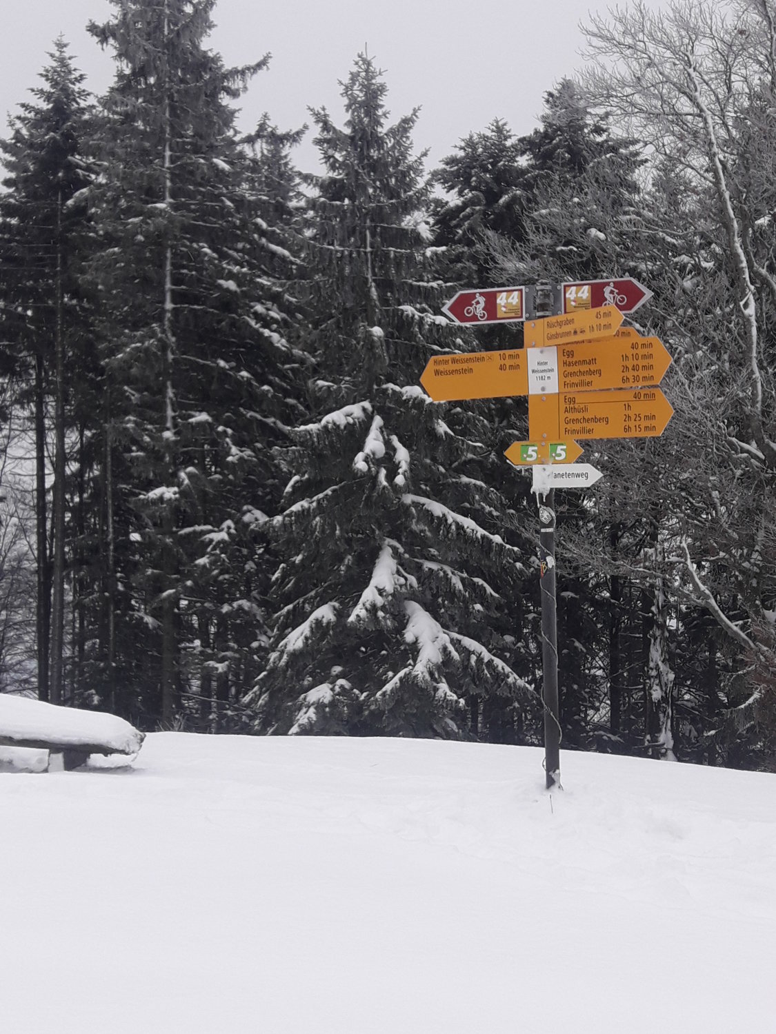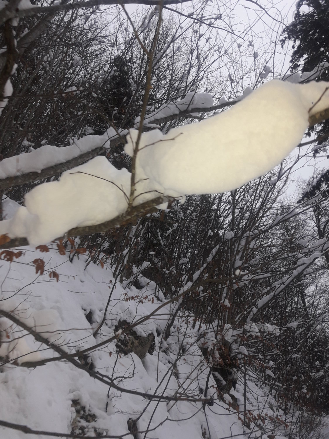 Schnee ab Parkplatz. Könnte schon fast für eine Skitour reichen :-) -naja, im unteren Bereich noch nicht ganz, ab der Hälfte bestimmt. Oben teils 50cm Schnee und heute eine strenge Biese.