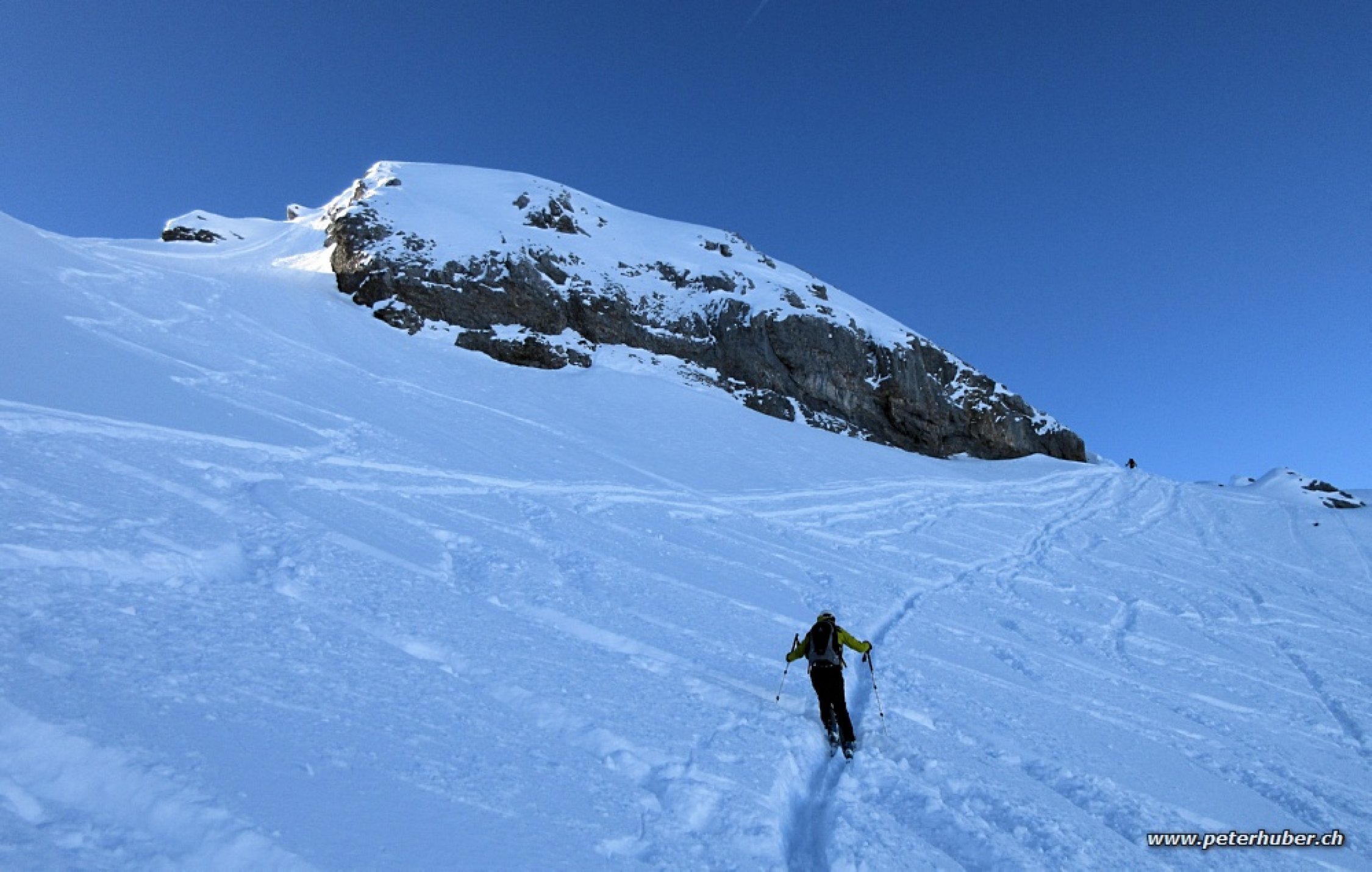 Gestartet in Hellberg. Schon bald dem Hochnebel entkommen und dann traumhaft schön. In Hellberg hat es zirka 40 cm Pulverschnee ohne Unterlage. Unterlage hats ab zirka 1400 m. Traumpulver auf der ganzen Tour mit wenigen Spuren drin. Fast die ganze Tour verläuft im Schatten, sehr kalt.