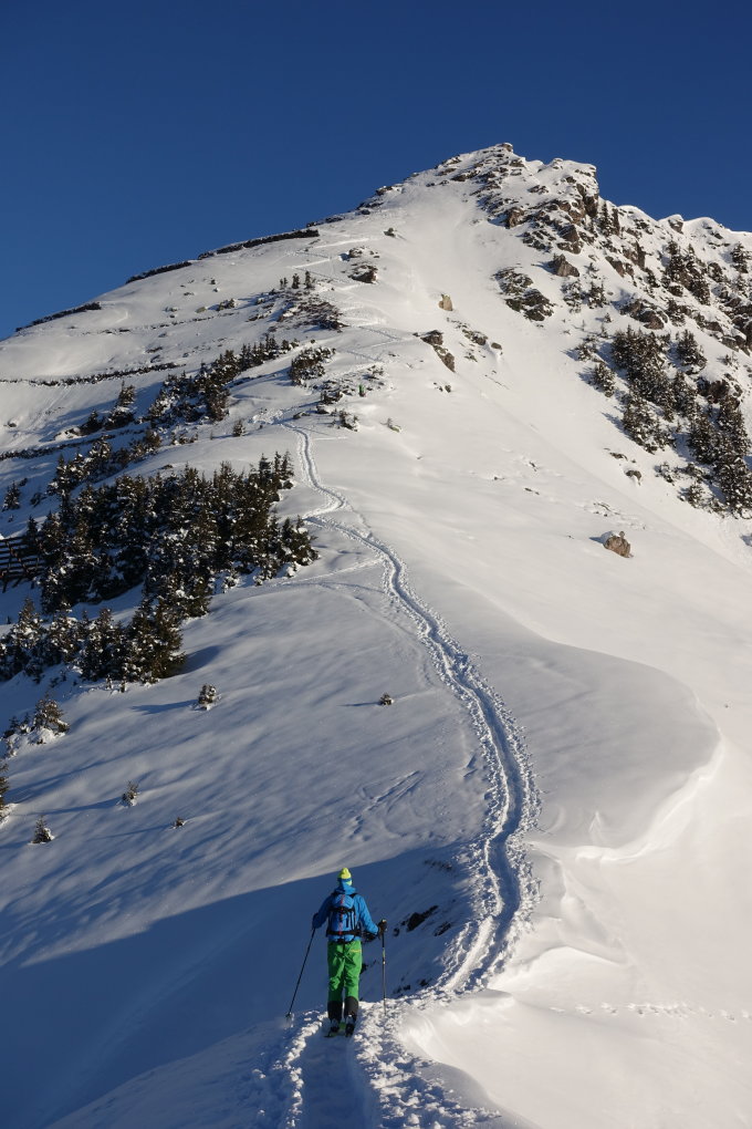 Das Wetter ein Traum, genau so auch die Schneequalität. Eine Tour oder ein Gebiet als „ausgezeichnet“ zu benoten, bei welchem man wegen zu wenig Schnee (oder unten raus überhaupt kein fahrbarer Schnee) das Material regelrecht malträtiert, ist schlichtwegs irreführend.