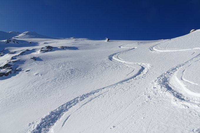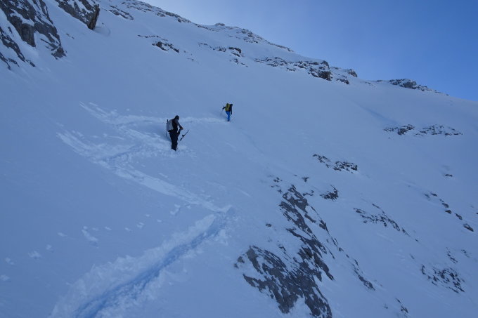 Alles gemeinsam gespurt. Ein Tourenbekannter kam kurz vor dem Botaloch noch dazu. An dieser Stelle auch Danke für' s spuren.