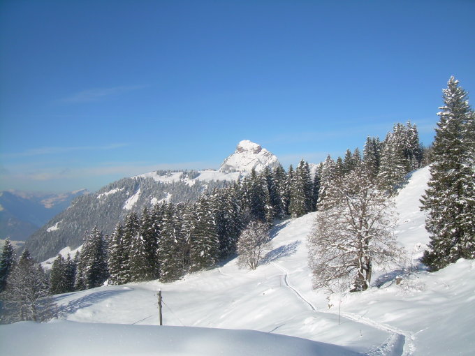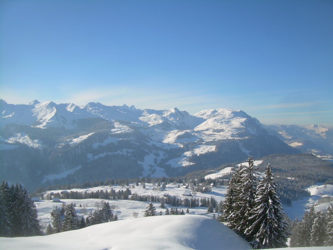 Eine gemischte Gesellschaft von Schneeschuhwanderern und Tourenskilern startete am späten Morgen gemeinsam von der unterhalb der Ibergeregg situierten Lägernhütte. Auf dem Gipfel angekommen teilten wir uns in verschiedene Gruppen. Wir gingen zu viert die oben hinterlegte Tour: Nathalie, Daniel und ich mit Schneeschuhen, Vladi auf Skiern. Wir ließen uns etwas Zeit, und mussten uns zudem unten im Ort erst wiederfinden, weshalb wir die Ibergeregg und unsere gemütliche Lägernhütte erst in der Dunkelheit wiedererreichten, was den Spassfaktor keinesfalls trübte - im Gegenteil: nach Verzehr eines köstlichen Krustenbratens und diverser anderer Leckereien entschieden sich 7 Personen für eine der Verdauung zuträgliche Vollmondtour auf den Brünnelistock. Den Gipfel erreichten wir um 22.45 h, um 23.20 h waren wir wieder zurück in der Hütte.