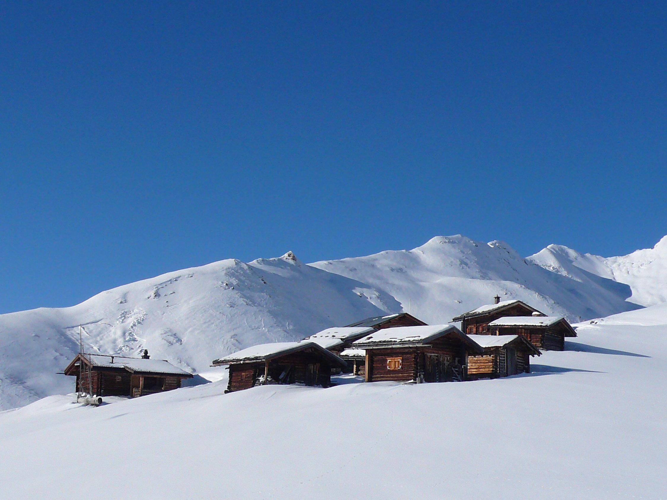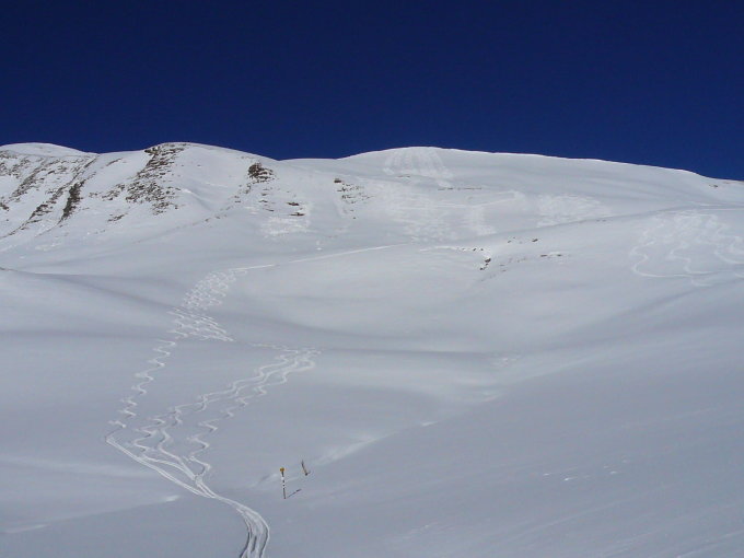 ab ca. 1700 Hm genügend Schnee, um bei der Abfahrt keinen Graskontakt zu bekommen. Gipfelhang feinster Pulver, ausser 8 anderen Tourengehern niemand im Gebiet Fatschel, wenn der Gipfel des Cunggel nicht mitgezählt wird.