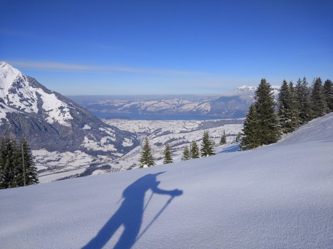 Weiter ungefähr dem Skilift entlang bis auf den kleinen Hügel nordöstlich vom Höri. Ab hier schönster Pulverschnee!