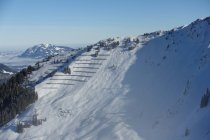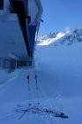 Wolkenloser Himmel. Heute ungefähr 5-10 Skifahrer am Gipfel. Das Skigebiet macht am 8. auf, die Pisten sehen gut aus.