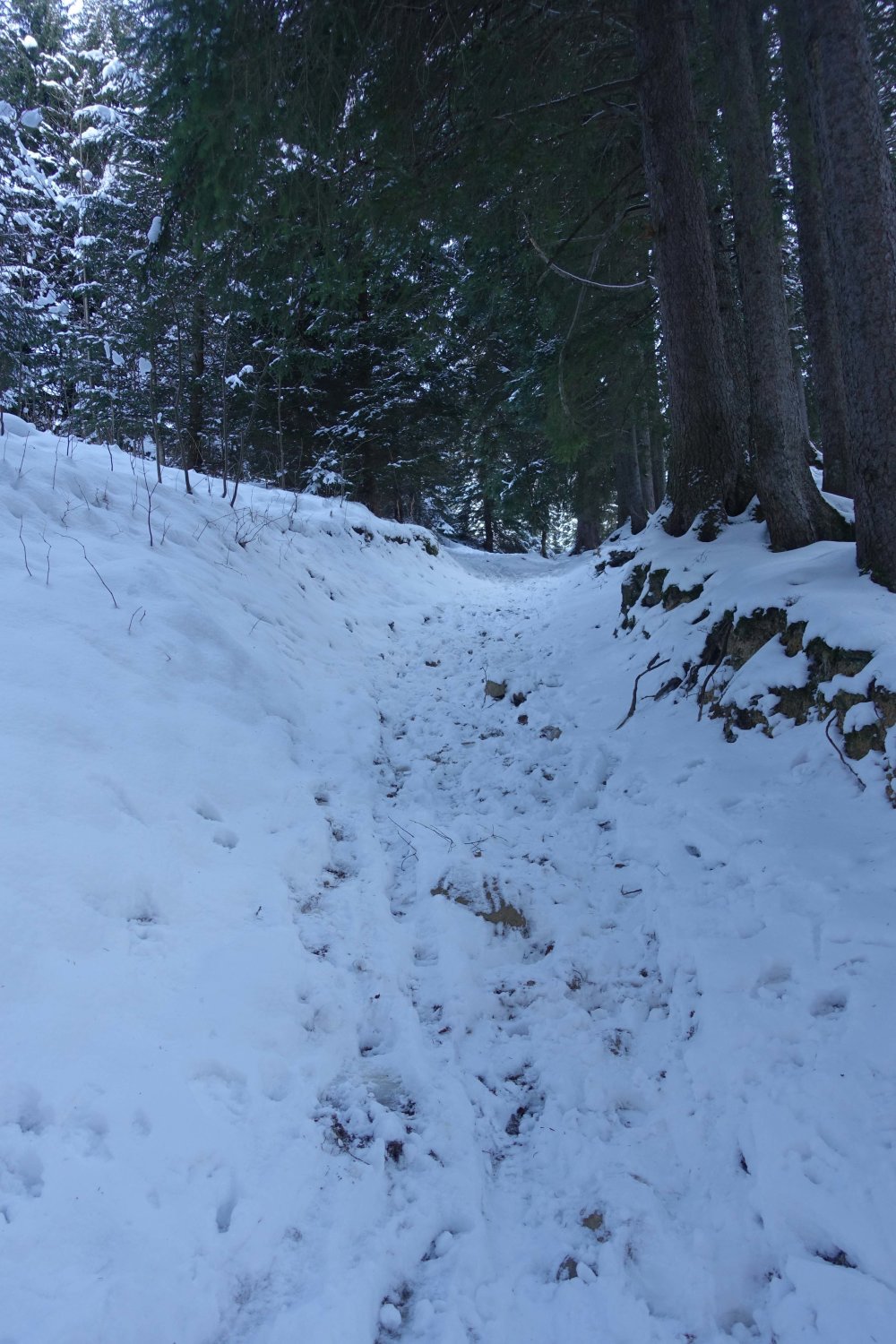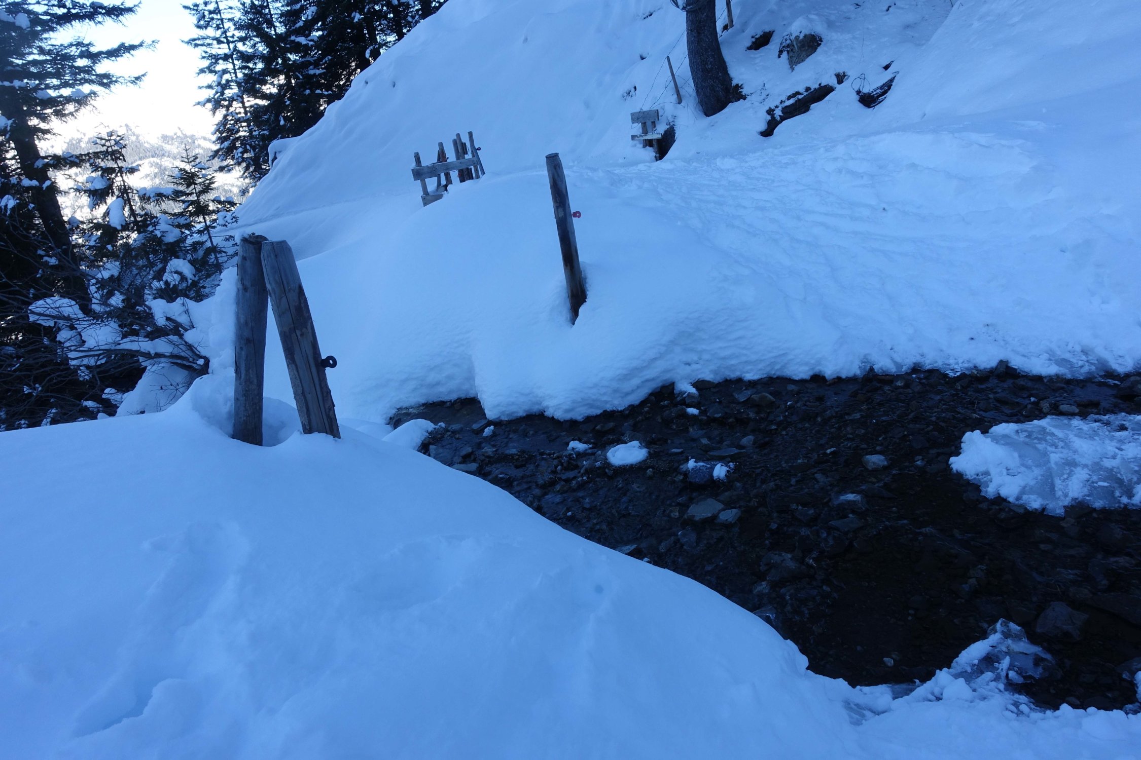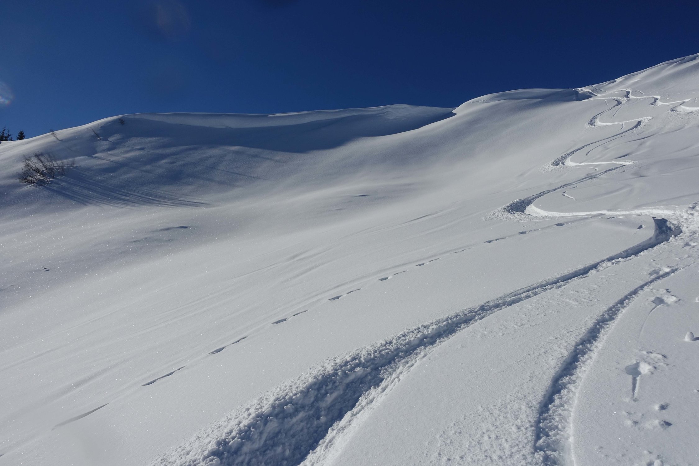 Es braucht mindestens 20cm Schnee, eher mehr. Im Moment noch viele kaum überdeckte Baumstümpfe und andere "nasties"