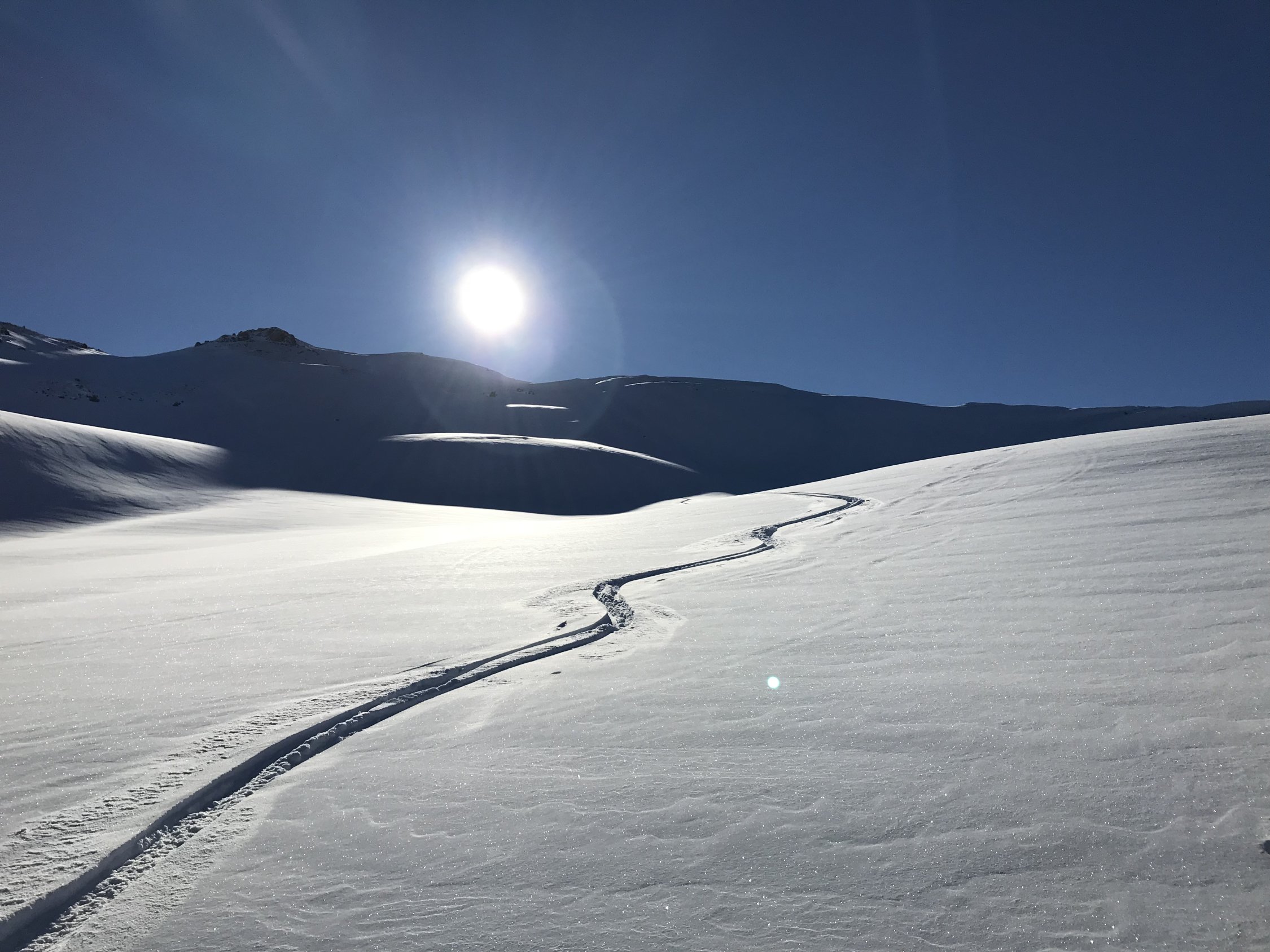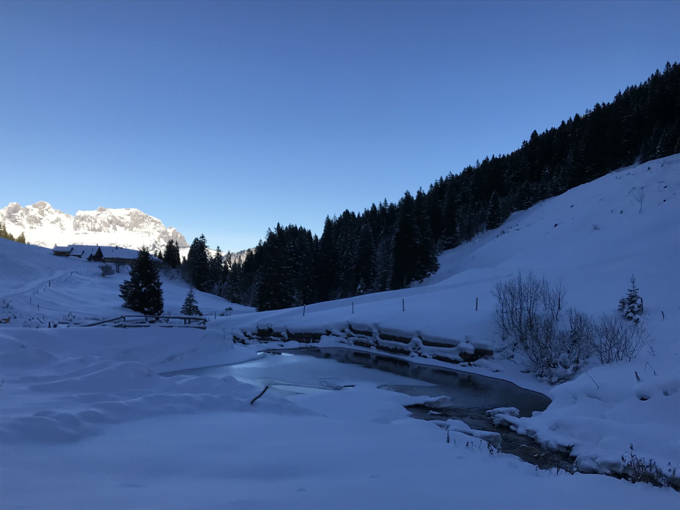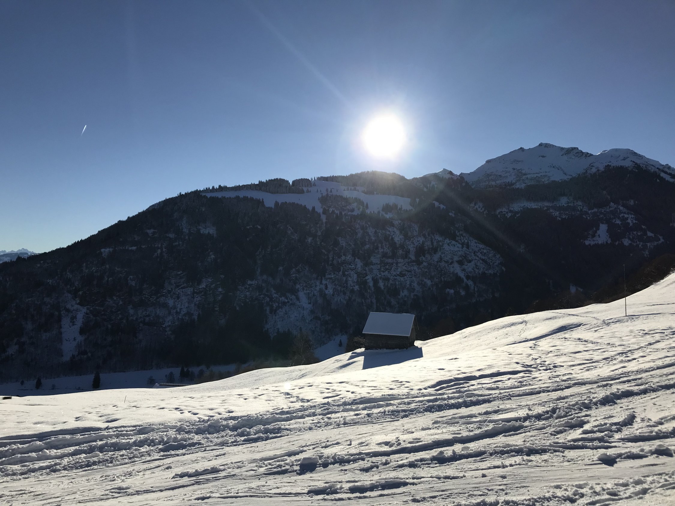 Gleich beim PP in Vermol losgelaufen, dann auf den Hüeneri und weiter zum Madchopf von dort hinuter nach Mad und dann Aufstieg zum Walachamm kurze Abfahrt durch Powderhang Chli Gadims und Aufstieg zum Guli ( für Gipfelbuch ein Bleistift oder Kulli mitnehmen fehlt leider in der Büchse). Abfahrt nach Gadims und Wiederaufstieg nach Langrain. Nun Abfahrt via Chläui Vorsäss nach Vermol.