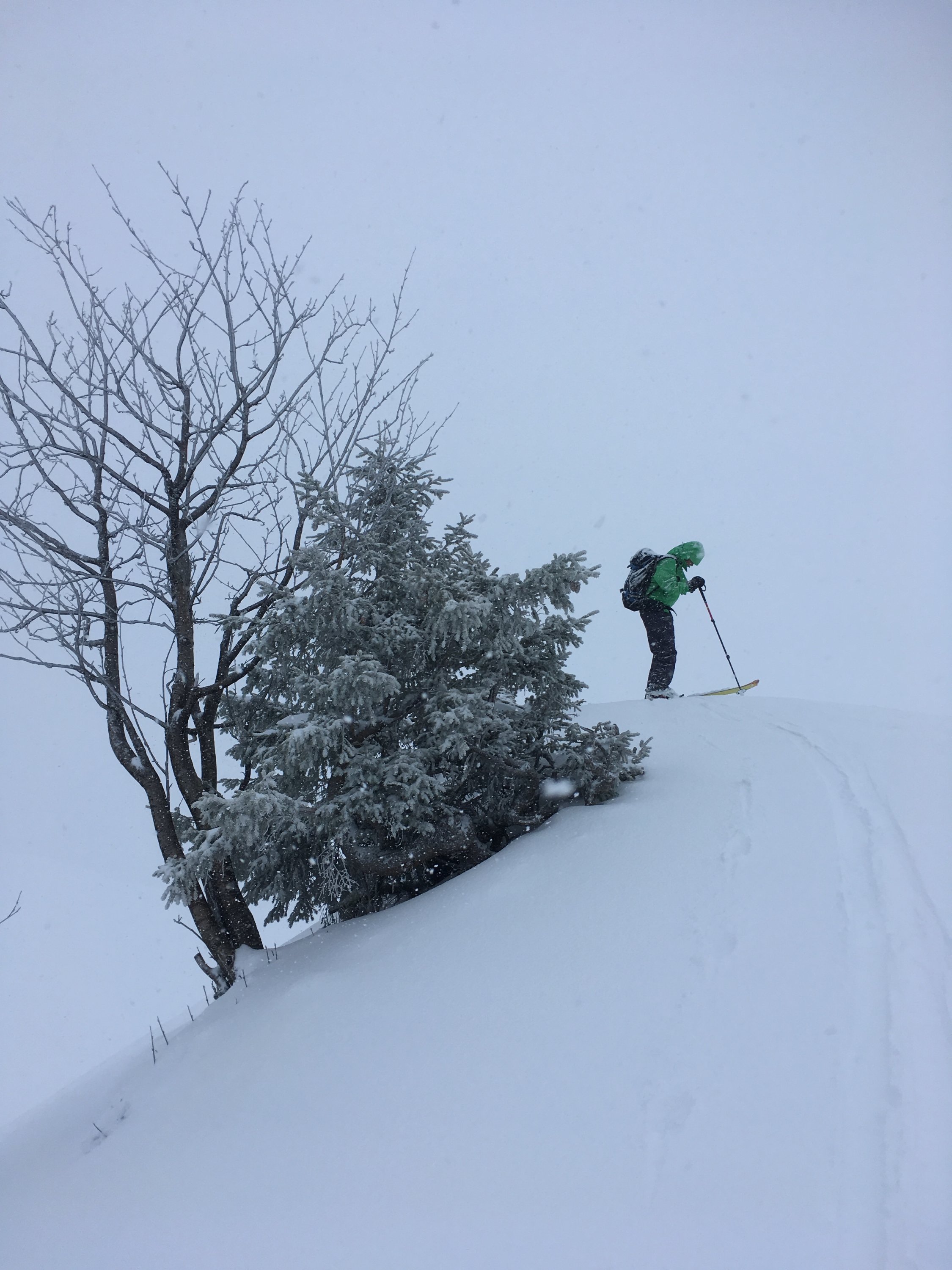 Da es in Oberiberg morgens um 08:30 regnete, entschlossen wir und statt dem Roggenstock ins wandli zu fahren und das Laucherenstöckli anzupeilen. Dort wurden wir mit Schneefall belohnt. Schwerer Schnee dennoch bald pulverig. Kaum Steinkontakt. Es war schön draussen. Waren schon lange nicht mehr alleine auf dem Laucheren.