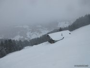 Wetter von allem - bedeckt, zeitweise heftiger Schneefall, auf dem Gipfel Sturm und Schneetreiben, bei der Abfahrt Übergang in Regen.