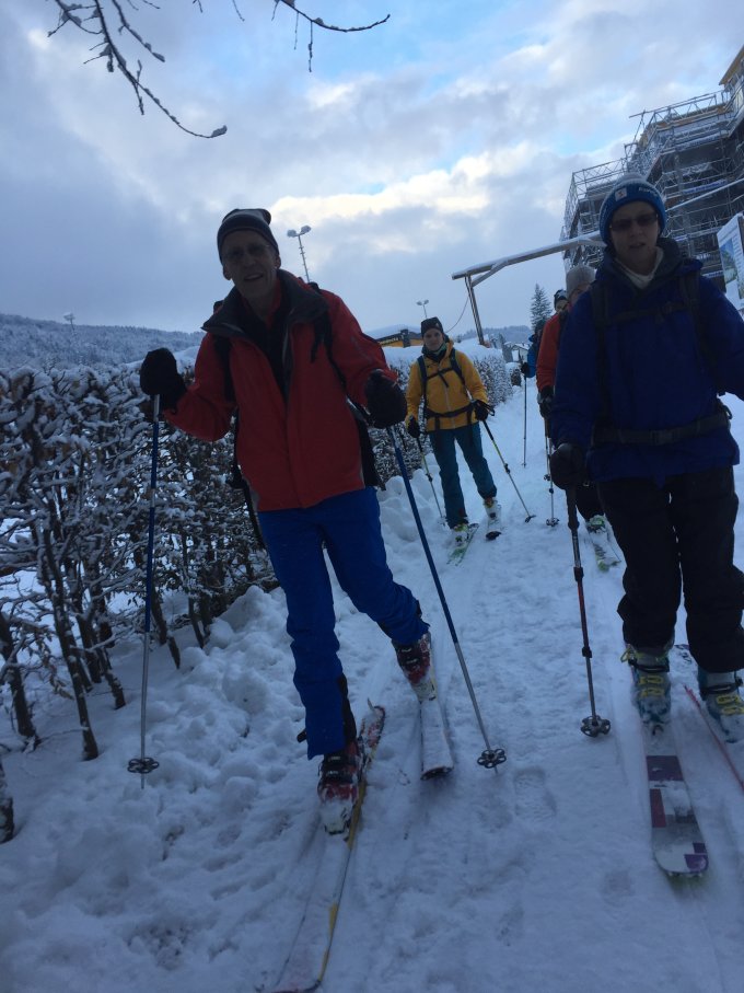 Konnten kurz nach Bahnhof Ebnat-Kappel die Ski schon anschnallen (Wanderweg den Thur entlang), es hat unten im Tal schon viel Schnee. In der nacht auf heute hat es ungefähr 10 Zentimeter geschneit.