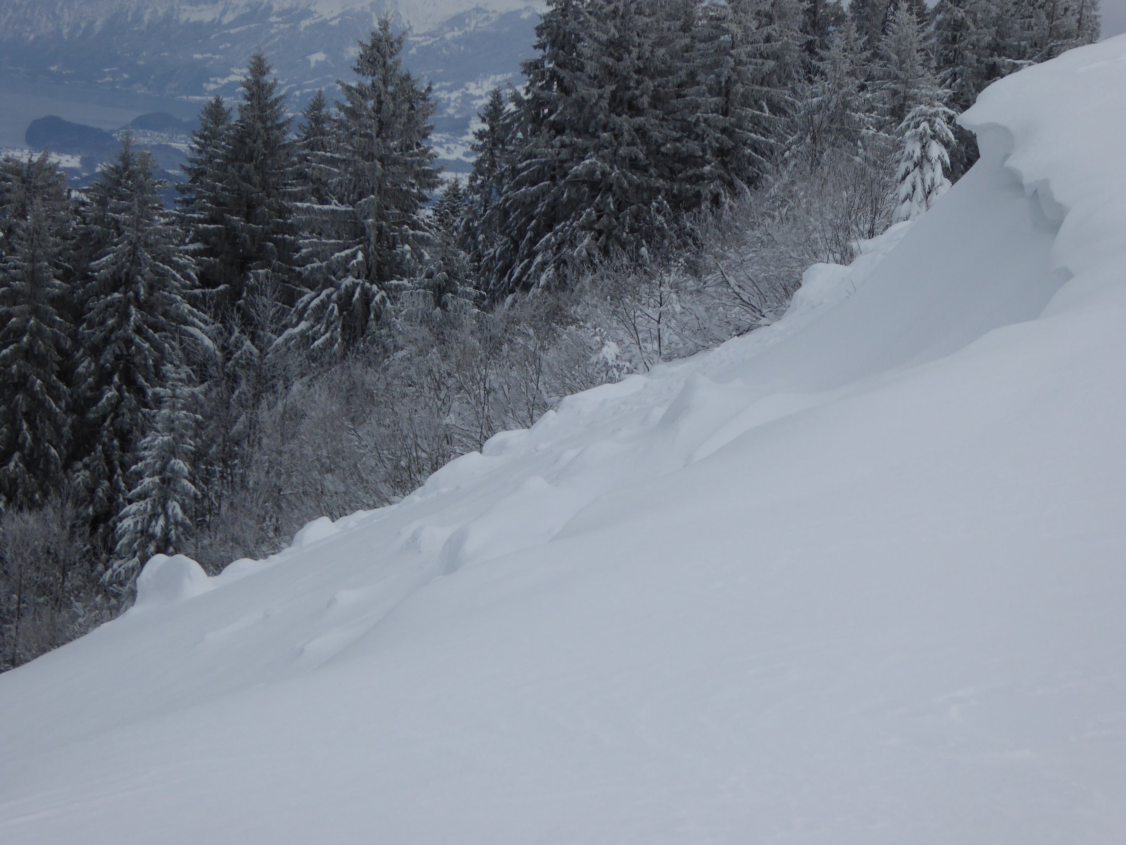 Die gesamte Route Pulverschnee. Auf dem Obere Grunigel wenig abgeblasen und ein paar mächtige Wächten, von denen man besser etwas weg bleibt.