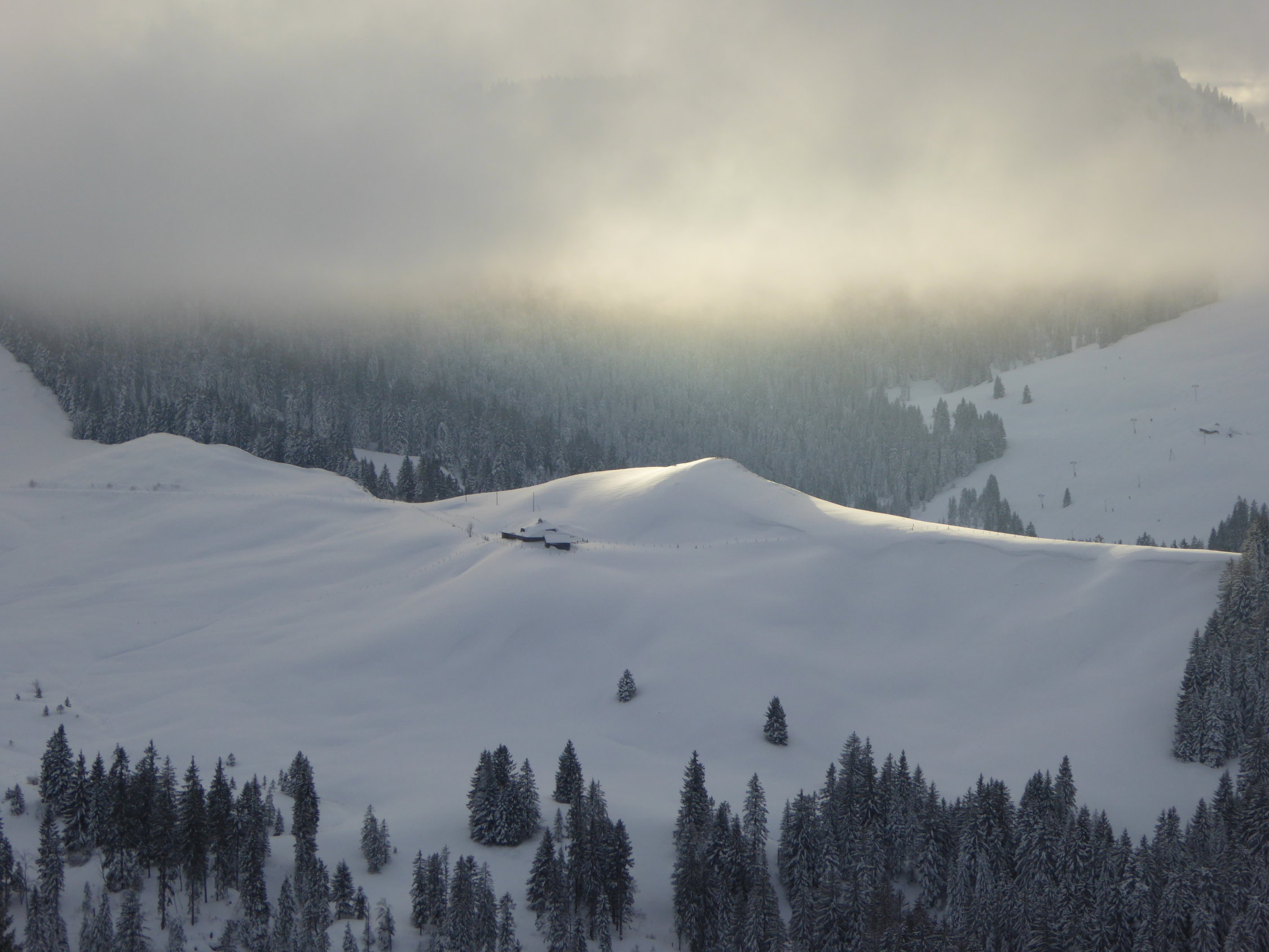 Ab Riggisberg Richtung Gurnigel wächst die Schneehöhe. Auf 1300 m hat es ca. 75 cm.