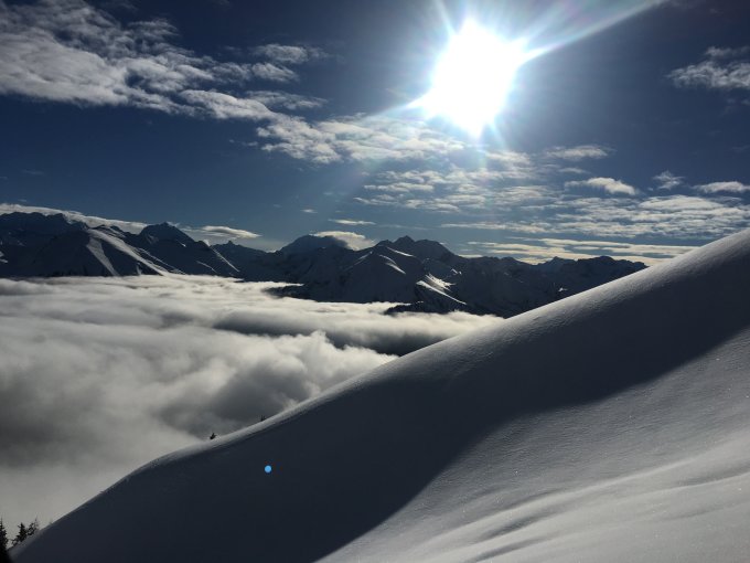 Aufstieg durch den Graben sehr gut. Abfahrt Pulver. Bei Sonneneinstrahlung wirde der Schnee sofort schwer.